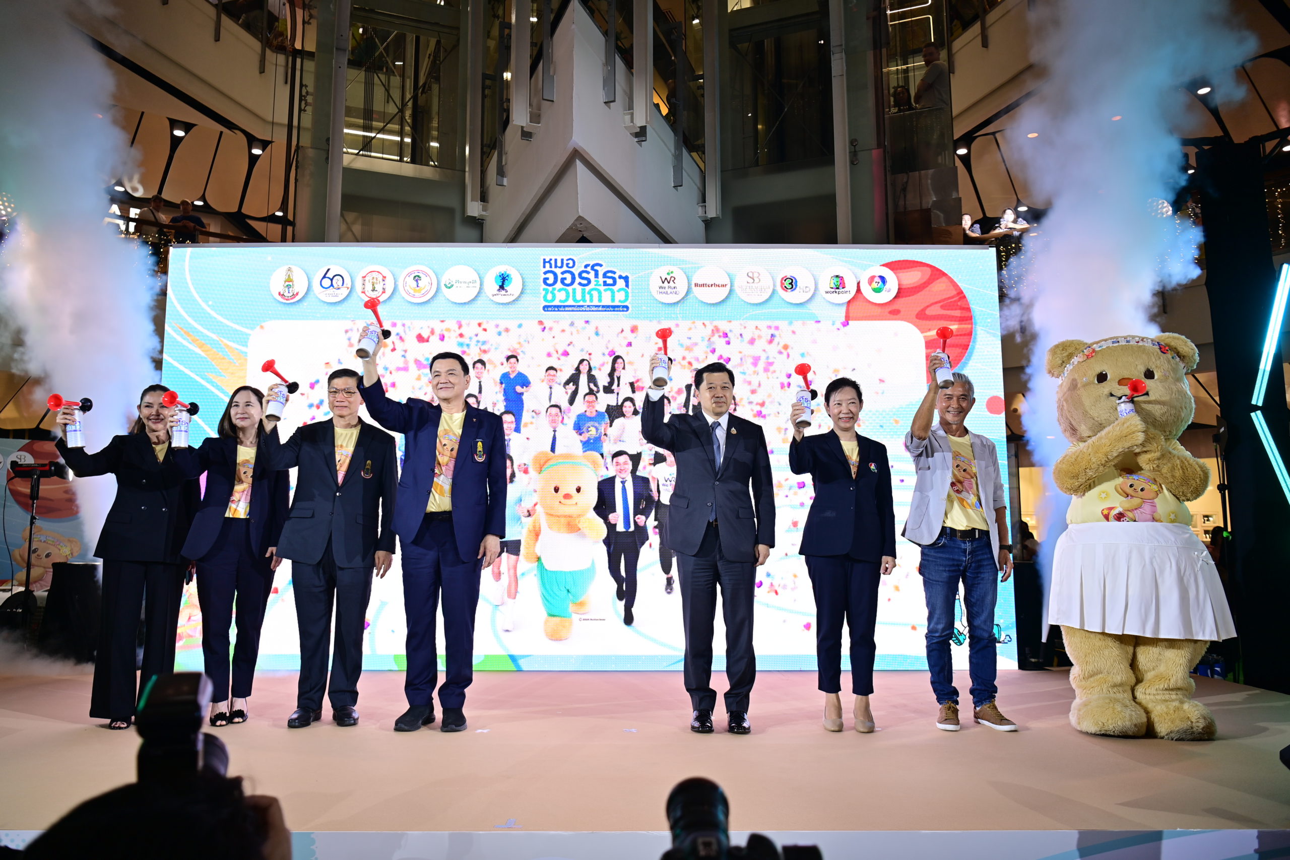 ทั้งนี้ ภายในงานแถลงข่าวยังเต็มไปด้วยสีสันและบรรยากาศแห่งการส่งต่อสุขภาพที่ดี โดยมี ‘น้องเนย’ (Butterbear) ร่วมสาธิตท่าวอร์มอัพก่อนออกกำลังกาย พร้อมขบวนพาเหรดดาราสายสุขภาพ อาทิ ภณ ณวัสน์ ยิหวา ปรียากานต์ สมิธ ภาสวิชญ์ อ๋อง สิทธานต์ นีน่า ณัฐชา เต๋า เศรษฐพงศ์ แก้มบุ๋ม ปรียาดา พีท กันตพร บิว ณัฐพล ไรยวงค์ และดีแลนด์ เดโชชัย ธิติอภิธาน
