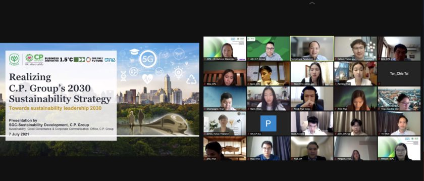 นอกจากนี้ ยังมีผู้บริหารจากเครือเจริญโภคภัณฑ์ คุณสมเจตนา ภาสกานนท์ ผู้อำนวยการด้านพัฒนาความยั่งยืน สำนักบริหารความยั่งยืน ธรรมาภิบาล และสื่อสารองค์กร ที่มาให้ความรู้เกี่ยวกับ ยุทธศาสตร์ความยั่งยืน ของเครือเจริญโภคภัณฑ์ ที่สะท้อนความร่วมมือทั้งภาคธุรกิจ ภาควิชาการและภาคประชาชน ในการหาแนวทางการแก้ปัญหาในมิติด้านสิ่งแวดล้อม ซึ่งเป็นส่วนหนึ่งของเป้าหมายการพัฒนาที่ยั่งยืน (SDGs) ภายใต้กรอบขององค์การสหประชาชาติ ในรูปแบบออนไลน์