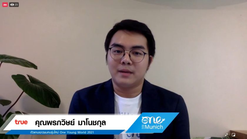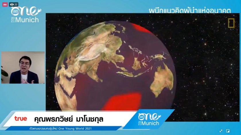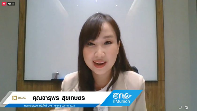 เมื่อที่ 19 กรกฎาคมที่ผ่านมา รายการ The Sustain จัด Facebook Live ร่วมพูดคุยกับคุณ ภูมิ ศิรประภาศิริ ผู้ช่วยกรรมการผู้จัดการ สำนักความร่วมมือระหว่างประเทศด้านความยั่งยืนและสื่อสารองค์กร เครือเจริญโภคภัณฑ์และตัวแทนเยาวชนคนรุ่นใหม่ คุณจารุพร สุขเกษตร หรือคุณตาล พร้อมด้วย คุณพรภวิษย์ มาโนชกุลหรือคุณพอล ในหัวข้อ… “Getting ready to be the change maker on One Young World Summit 2021 : Day 2 Global Big Issues: Are there any relation between the Climate Crisis and the Pandemics? ” เพื่อเตรียมความพร้อมึการเข้าร่วมประชุม One Young World Summit 2021 ระหว่างวันที่ 22-25 กรกฎาคม 2564