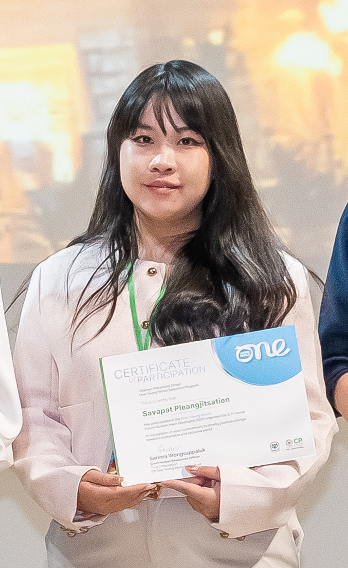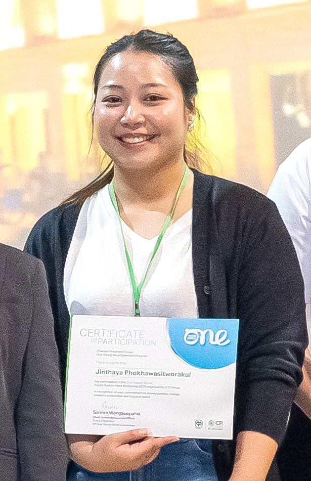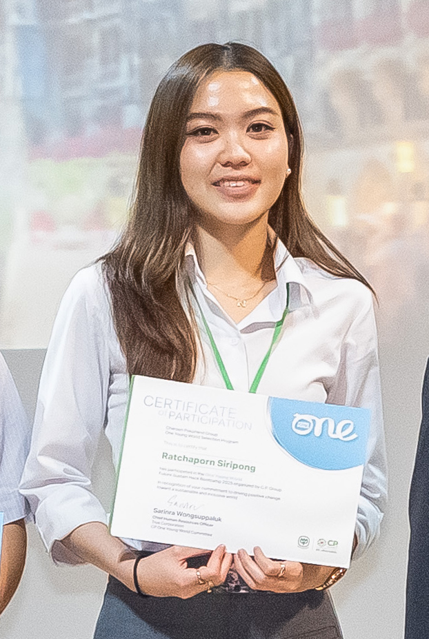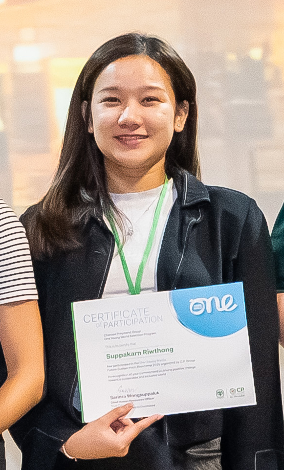 จบการศึกษา บัณฑิตศิลปศาสตร์ สาขาภาษาอังกฤษ จาก มหาวิทยาลัยมหิดล ก่อนหน้านี้เคยเป็น Project Manager ภายใต้ PLP Program และ Business Development Executive ที่ CP Axtra (Lotus’s) โดยมีผลงานพัฒนา Operation Excellence และ O2O Sales ทำให้ยอดขาย B2B และ O2O เติบโตกว่า 73% ภายในหนึ่งปี รวมถึงริเริ่มโครงการ AI Smart Camera และ Electronic Shelf Label