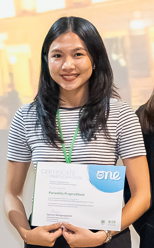 พวกเขาคือเยาวชนที่สะท้อนความหลากหลายขององค์กร ไม่ว่าจะมาจากกลุ่มธุรกิจด้านอาหาร การเกษตร การเงิน การตลาด ดิจิทัล นวัตกรรม กฎหมาย และความยั่งยืน — แต่ทุกคนมีสิ่งหนึ่งที่เหมือนกัน คือ หัวใจของผู้นำที่อยากเปลี่ยนโลกให้ดีขึ้น