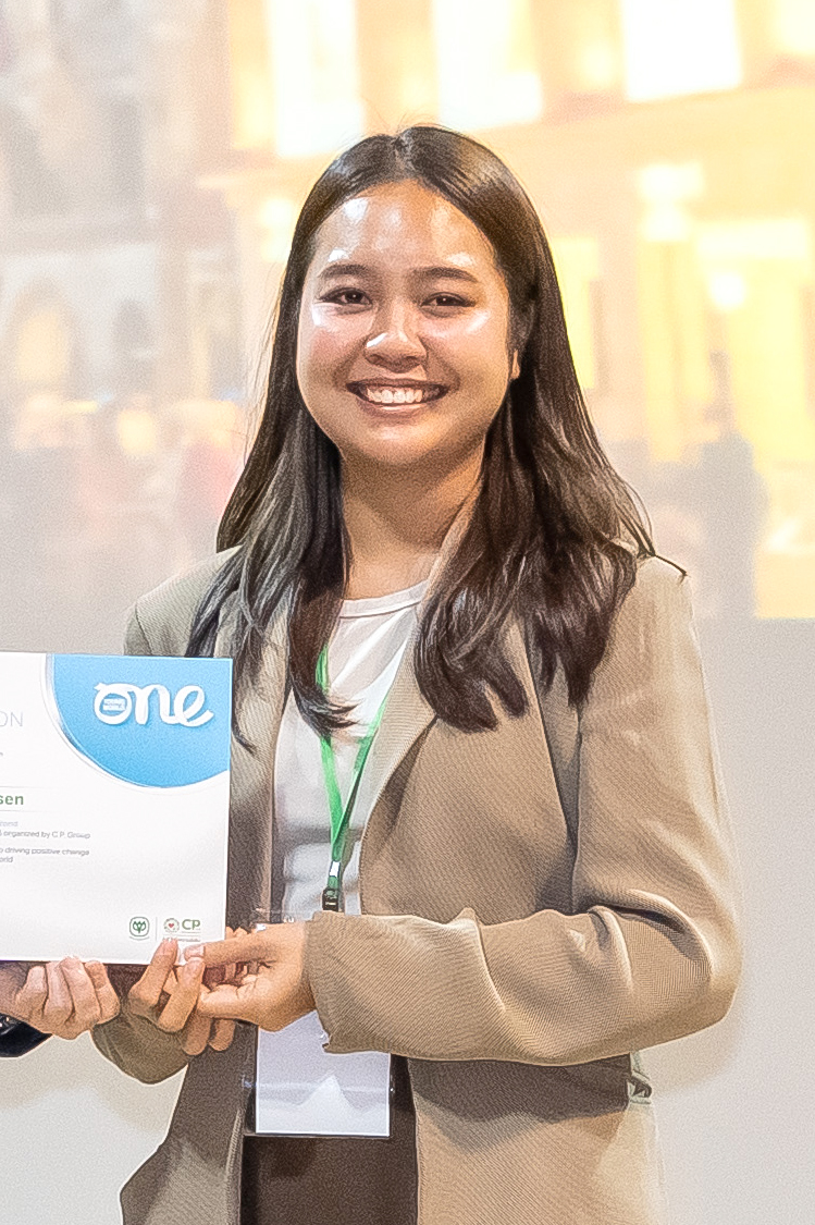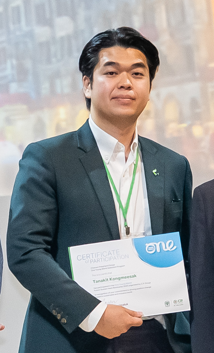 จบการศึกษาระดับปริญญาตรี สาขาเศรษฐศาสตร์ระหว่างประเทศ มหาวิทยาลัยแม่โจ้ เริ่มต้นเส้นทางกับเครือซีพีในโครงการ FLP และ PLP ดูแลงานจัดซื้อวัตถุดิบในเมียนมาและเวียดนาม โดยได้รับโอกาสและการสนับสนุนจากผู้บริหารในการดำเนินโครงการที่สร้างผลลัพธ์ เช่น การขนส่งทางรถไฟแทนรถบรรทุกซึ่งลดต้นทุนกว่า 60% การต่อรองค่าระวางเรือจนเพิ่มการส่งออกจาก 20,000 ตันเป็น 25,000 ตัน ประหยัดกว่า 4 ล้านบาท และการขนส่งถั่วเขียวจากเมียนมาสู่ตลาดไทยได้สำเร็จ นอกจากนี้ยังร่วมขับเคลื่อนโครงการ Carbon Credit Project ในเมียนมาเพื่อช่วยเกษตรกรลดต้นทุนและสร้างผลกระทบเชิงสิ่งแวดล้อม ปัจจุบันดำรงตำแหน่ง Business Development – Charoen Pokphand Produce (Myanmar) ดูแลการวางแผนการซื้อ การจัดซื้อ และการวิเคราะห์ต้นทุนในตลาดที่ท้าทาย