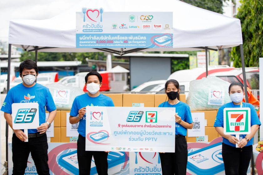 โดย PPTV จับมือ 7-Eleven ส่งมอบอาหารพร้อมทาน 20,000 กล่องและหน้ากากอนามัย ระยะเวลารวมกว่า 40 วัน ให้กับศูนย์พักคอยผู้ป่วยวัดสะพาน เขตคลองเตยที่เป็น 1 ใน 40 จุดของ “โครงการครัวปันอิ่ม” จากเครือเจริญโภคภัณฑ์ เพื่อร่วมส่วนหนึ่งในการกระจายความห่วงใยให้พี่ๆน้องๆในชุมชนต่างๆ และผู้ประกอบการธุรกิจร้านอาหารรายย่อยให้สามารถฝ่าวิกฤตโควิดไปได้