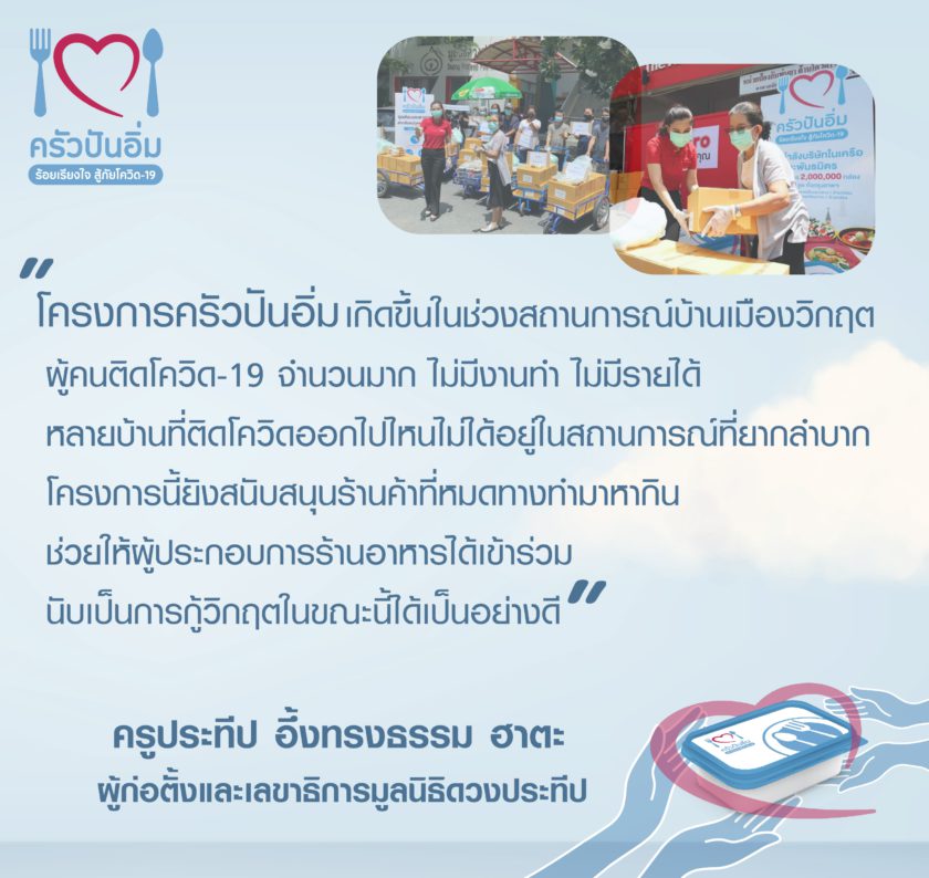 🔷 āļˆāļēāļāđāļ™āļ§āļ„āļīāļ”āļ—āļĩāđˆāļ—āđˆāļēāļ™āļ›āļĢāļ°āļ˜āļēāļ™āļ­āļēāļ§āļļāđ‚āļŠāđ€āļ„āļĢāļ·āļ­āđ€āļˆāļĢāļīāļāđ‚āļ āļ„āļ āļąāļ“āļ‘āđŒ āļ˜āļ™āļīāļ™āļ—āđŒ āđ€āļˆāļĩāļĒāļĢāļ§āļ™āļ™āļ—āđŒ āļ›āļĢāļ°āļāļēāļĻāļ„āļ§āļēāļĄāļŠāđˆāļ§āļĒāđ€āļŦāļĨāļ·āļ­āđ€āļĢāđˆāļ‡āļ”āđˆāļ§āļ™āđƒāļŦāđ‰āđāļāđˆāļ›āļĢāļ°āļŠāļēāļŠāļ™āļ•āļĨāļ­āļ”āļˆāļ™āļœāļđāđ‰āļ›āļĢāļ°āļāļ­āļšāļāļēāļĢāļĢāđ‰āļēāļ™āļ­āļēāļŦāļēāļĢāļĢāļēāļĒāļĒāđˆāļ­āļĒāļ—āļĩāđˆāđ„āļ”āđ‰āļĢāļąāļšāļœāļĨāļĢāļ°āļ—āļšāļˆāļēāļāđ‚āļ„āļ§āļīāļ”-19 āļ™āļģāđ„āļ›āļŠāļđāđˆāļāļēāļĢāļœāļ™āļķāļāļāļģāļĨāļąāļ‡āļĢāđˆāļ§āļĄāļāļąāļ™āļ‚āļ­āļ‡āļ—āļļāļāļāļĨāļļāđˆāļĄāļ˜āļļāļĢāļāļīāļˆāđƒāļ™āđ€āļ„āļĢāļ·āļ­āļ‹āļĩāļžāļĩ āļžāļĢāđ‰āļ­āļĄāļžāļąāļ™āļ˜āļĄāļīāļ•āļĢāļ­āļ‡āļ„āđŒāļāļĢāļ•āđˆāļēāļ‡āđ†āđāļĨāļ°āļāļĨāļļāđˆāļĄāļˆāļīāļ•āļ­āļēāļŠāļēāļāļ§āđˆāļē 100 āđāļŦāđˆāļ‡ āļĢāļ°āļ”āļĄāļāļģāļĨāļąāļ‡āļāļąāļ™āļŠāđˆāļ§āļĒāđ€āļŦāļĨāļ·āļ­āļ›āļĢāļ°āļŠāļēāļŠāļ™āđāļĨāļ°āļŠāļļāļĄāļŠāļ™āļ āļēāļĒāđƒāļ•āđ‰ āđ‚āļ„āļĢāļ‡āļāļēāļĢ “āļ„āļĢāļąāļ§āļ›āļąāļ™āļ­āļīāđˆāļĄāļĢāđ‰āļ­āļĒāđ€āļĢāļĩāļĒāļ‡āđƒāļˆāļŠāļđāđ‰āļ āļąāļĒāđ‚āļ„āļ§āļīāļ”-19” āļ‚āļķāđ‰āļ™