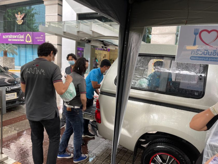 ครัวปันอิ่ม@ทรู ทาวเวอร์ วันนี้ (27 ส.ค.) มีทีมพัฒนาชุมชนและสวัสดิการสังคม สำนักงานเขตห้วยขวาง ร่วมกับทีมงานของกลุ่มทรู นำข้าวกล่องจำนวน 300 กล่องไปแจกจ่ายให้แก่ประชาชนในชุมชนลาดพร้าว 45 ซึ่งเป็นพื้นที่สีแดง มีชาวชุมชนติดเชื้อ และกักตัว รวมทั้งมีผู้ป่วยติดเตียง