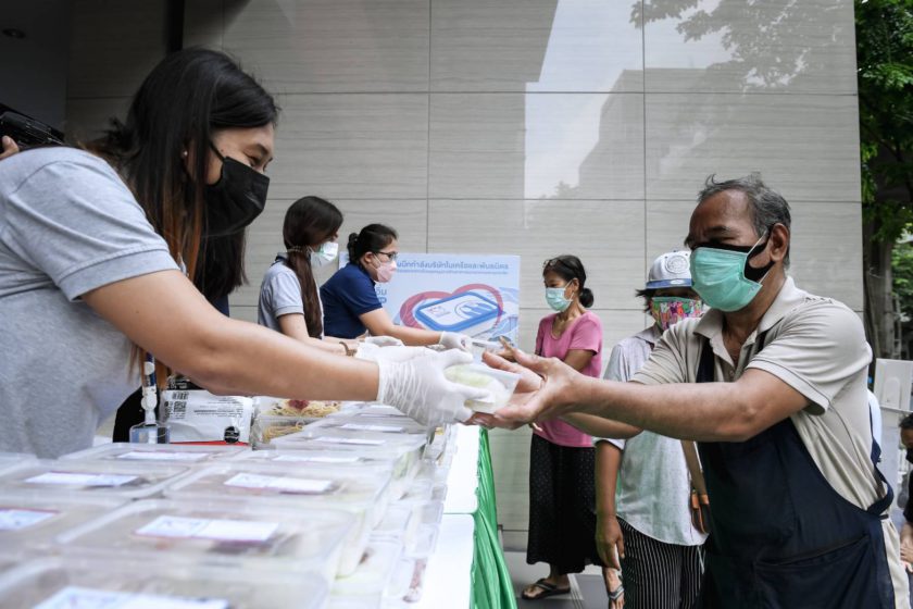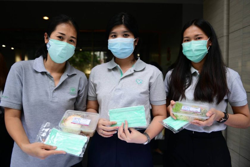 โดยในการแจกข้าวกล่องวันนี้คุณเยาวนุช บุตรศรีภูมิ รองผู้จัดการฝ่ายบริหารอาคาร 1 บริษัท ซีพี แลนด์ จำกัด (มหาชน) เป็นผู้แทนเครือเจริญโภคภัณฑ์ มอบข้าวกล่องให้แก่ผู้แทนจาก ตำรวจมวลชนสัมพันธ์ สถานีตำรวจนครบาลทุ่งมหาเมฆ ผู้แทนจากชุมชนหลังโรงพยาบาล BNH ผู้แทนจากสำนักรักษาความสะอาด เขตบางรัก ซึ่งผู้แทนทั้งสามหน่วยงานได้นำไปส่งต่อแก่ประชาชนที่พักอาศัยในชุมชนบริเวณหน่วยงานและล้วนแล้วแต่เป็นผู้ที่ได้รับผลกระทบทางด้านรายได้ ความเป็นอยู่ตลอดมา