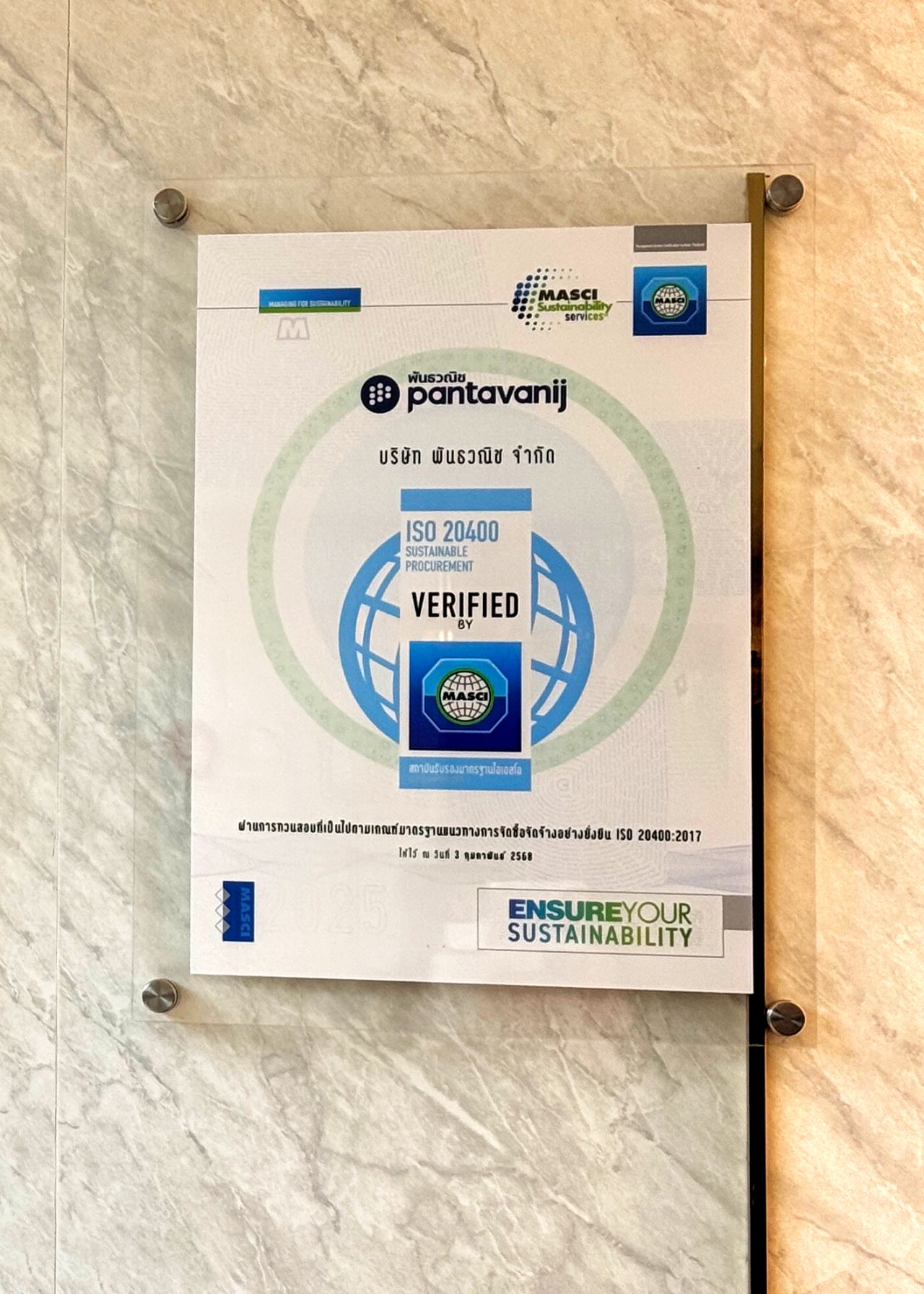 พันธวณิช ผู้ให้บริการด้าน eProcurement Platform รายแรกของไทยที่คว้ามาตรฐาน ISO 20400:2017 ซึ่งเป็นมาตรฐานสากลด้านการจัดซื้อจัดจ้างอย่างยั่งยืน (Sustainable Procurement) ได้รับมอบประกาศนียบัตรจัดขึ้นอย่างเป็นทางการเมื่อวันที่ 11 กุมภาพพันธ์ 2568