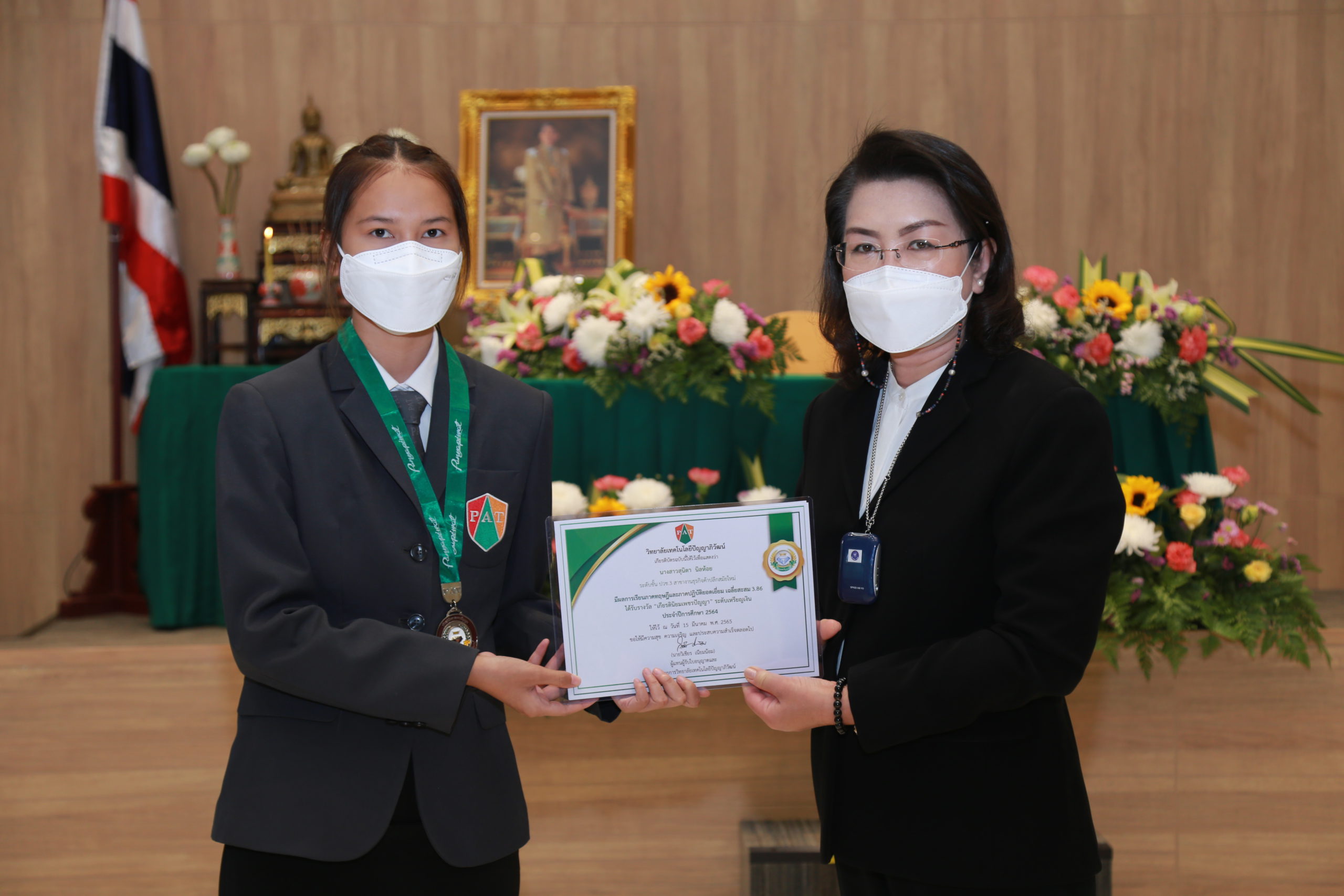 1 เมษายน 2565 ศูนย์การเรียนปัญญาภิวัฒน์คลองสาน ศูนย์การเรียนปัญญาภิวัฒน์สะพานควาย และศูนย์การเรียนปัญญาภิวัฒน์จรัญสนิทวงศ์ จัดพิธีมอบใบประกาศนียบัตร ประจำปีการศึกษา 2564 ให้กับนักเรียนระดับประกาศนียบัตรวิชาชีพ (ปวช.) ชั้นปีที่ 3 สาขาวิชาธุรกิจค้าปลีก จำนวนทั้งสิ้น 144 คน โดยได้รับเกียรติจาก ดร.ธเรศวร์ ธนะสมบูรณ์ ที่ปรึกษาวิทยาลัยเทคโนโลยีปัญญาภิวัฒน์ เป็นประธานในพิธีมอบประกาศนียบัตรแก่ผู้สำเร็จการศึกษา พร้อมด้วยคณะผู้บริหาร ครู อาจารย์ร่วมแสดงความยินดี ณ ห้องประชุมปัญญางามวิทยาลัยเทคโนโลยีปัญญาภิวัฒน์ เพื่อสร้างความ ภาคภูมิใจ ตลอดจนการสร้างขวัญกำลังใจให้แก่ผู้สำเร็จการศึกษาในการก้าวสู่ชีวิตการศึกษาต่อ ชีวิตการทำงาน และการดำเนินชีวิตเพื่อเป็นพลเมืองที่ดีของสังคม รวมถึงเป็นแบบอย่างที่ดีให้กับนักเรียนทุกคน