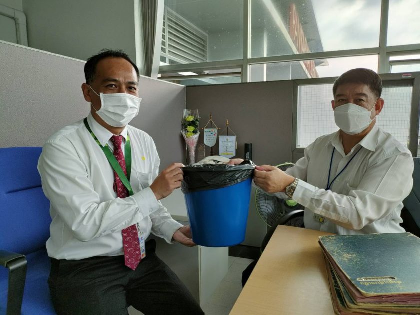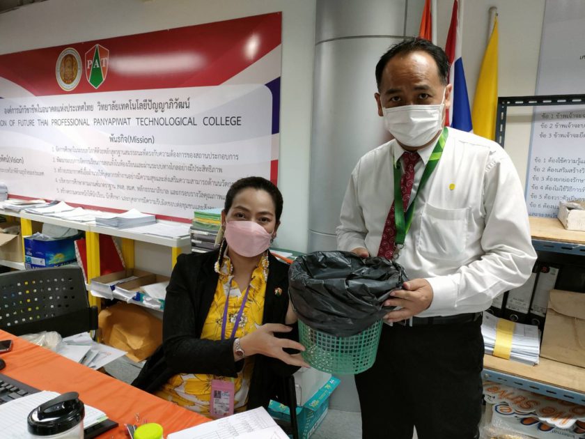 3 พฤษภาคม 2565 – คุณวิเชียร เนียมน้อม ผู้แทนผู้รับใบอนุญาตและผู้อำนวยการวิทยาลัยฯ เป็นประธานรับมอบสิ่งของอุปกรณ์สำหรับใช้ในโครงการ “PATอาชีวะไร้ถัง” รณรงค์ให้บุคลากรทุกคนได้มีส่วนร่วมในการจัดการขยะภายในนสถานศึกษา