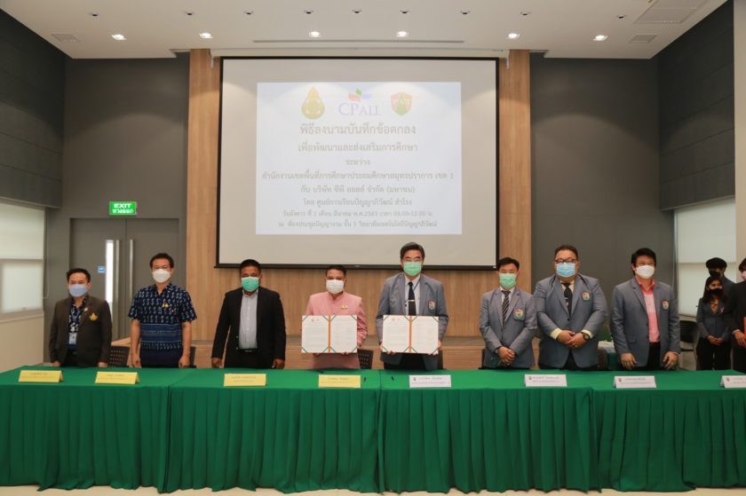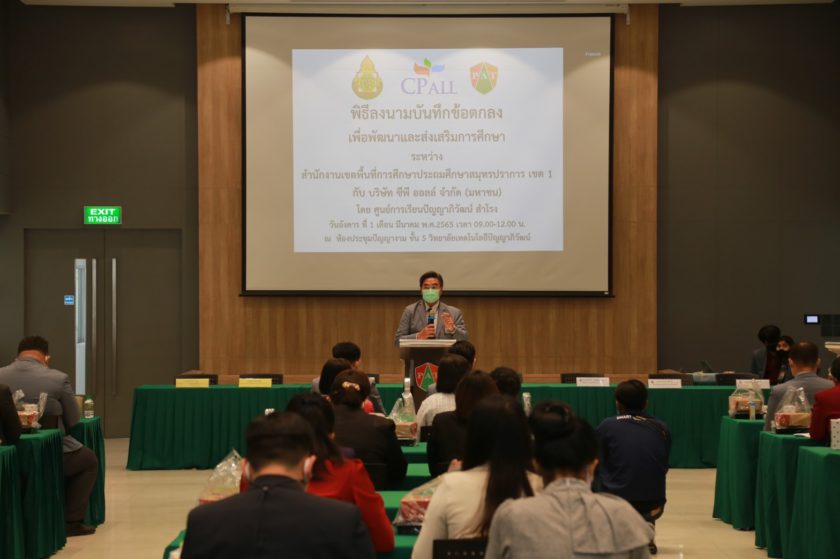 1 มีนาคม 2565 วิทยาลัยเทคโนโลยีปัญญาภิวัฒน์ ร่วมกับสำนักงานเขตพื้นที่การศึกษาประถมศึกษา สมุทรปราการ เขต 1 จัดพิธีลงนามบันทึกข้อตกลงความร่วมมือ เพื่อพัฒนาและส่งเสริมการศึกษา ณ ห้องประชุมปัญญางาม วิทยาลัยเทคโนโลยีปัญญาภิวัฒน์ โดยมีคุณวิเชียร เนียมน้อม ผู้แทนผู้รับใบอนุญาตและผู้อำนวยการฯ ในนาม ผู้แทนบริษัทซีพี ออลล์ จำกัด (มหาชน) ร่วมลงนามกับคุณทศพร ถือพุดซา ผู้อำนวยการสำนักงานเขตพื้นที่การศึกษาประถมศึกษา สมุทรปราการ เขต 1 พร้อมด้วยสักขีพยานของทั้ง 2 ฝ่าย มีวัตถุประสงค์เพื่อสนับสนุนนโยบายการจัดการอาชีวศึกษาของประเทศ และสนับสนุนการศึกษาให้กับนักเรียนที่สำเร็จการศึกษาระดับมัธยมศึกษาตอนต้นจากสถานศึกษาในสังกัดของสำนักงานเขตพื้นที่การศึกษา ที่ประสงค์เรียนสายอาชีพในสาขาวิชาธุรกิจค้าปลีก ให้ได้รับโอกาสอย่างเท่าเทียมและต่อเนื่อง