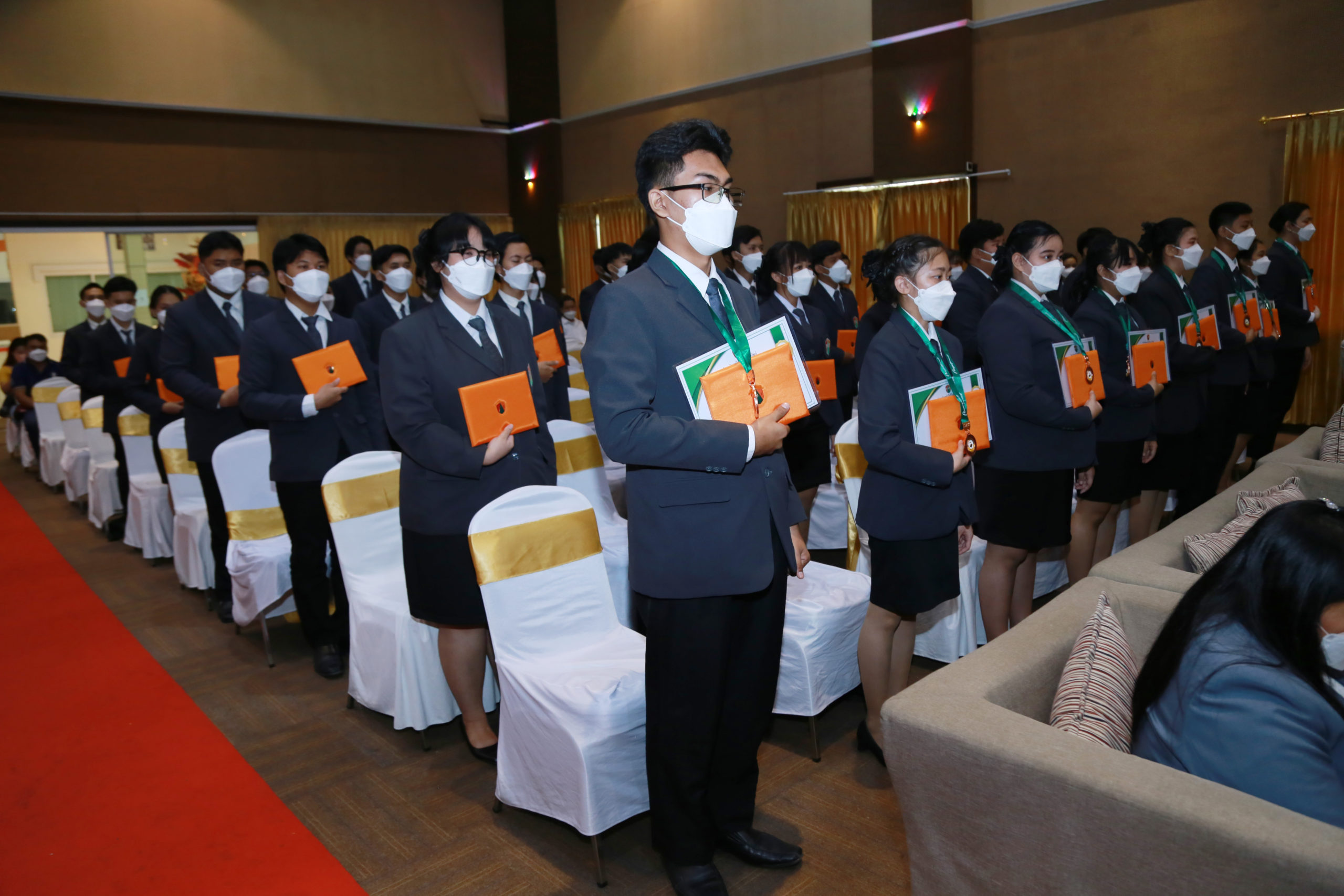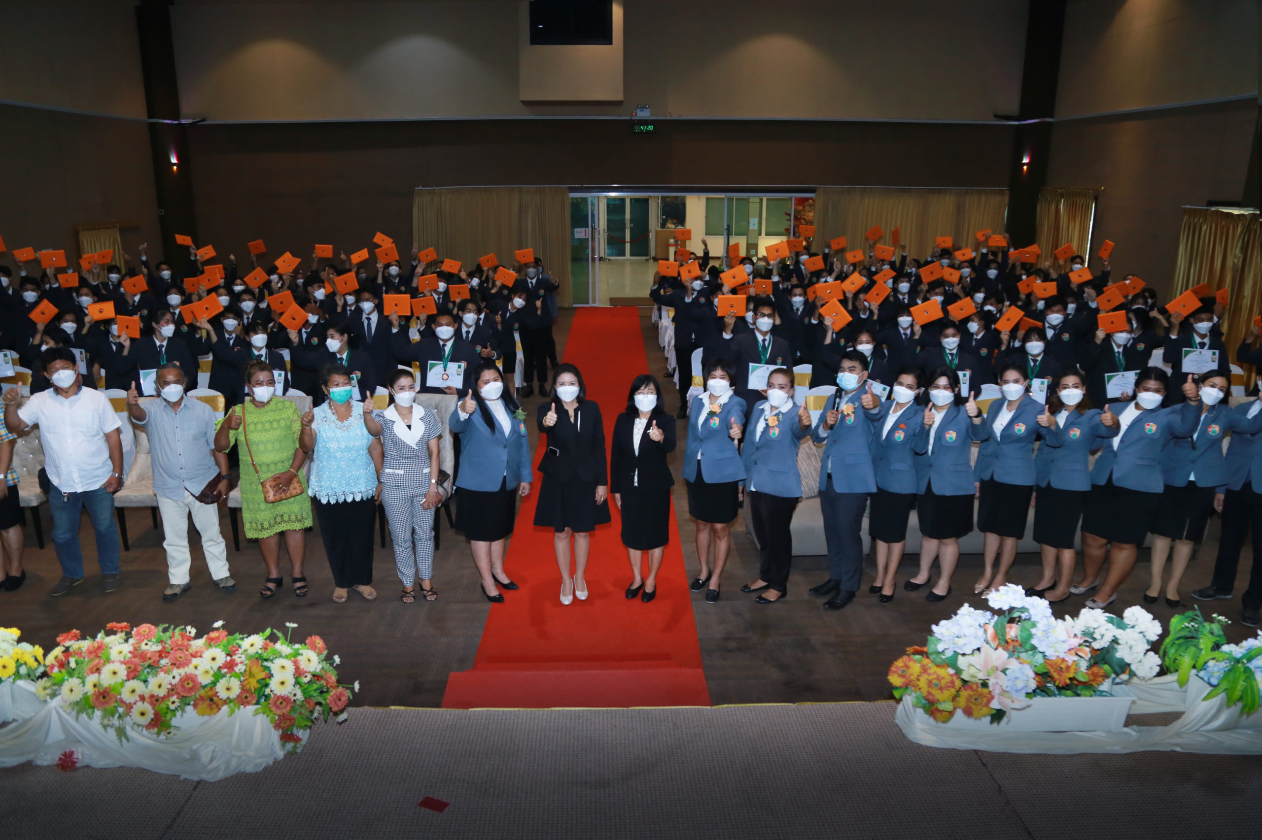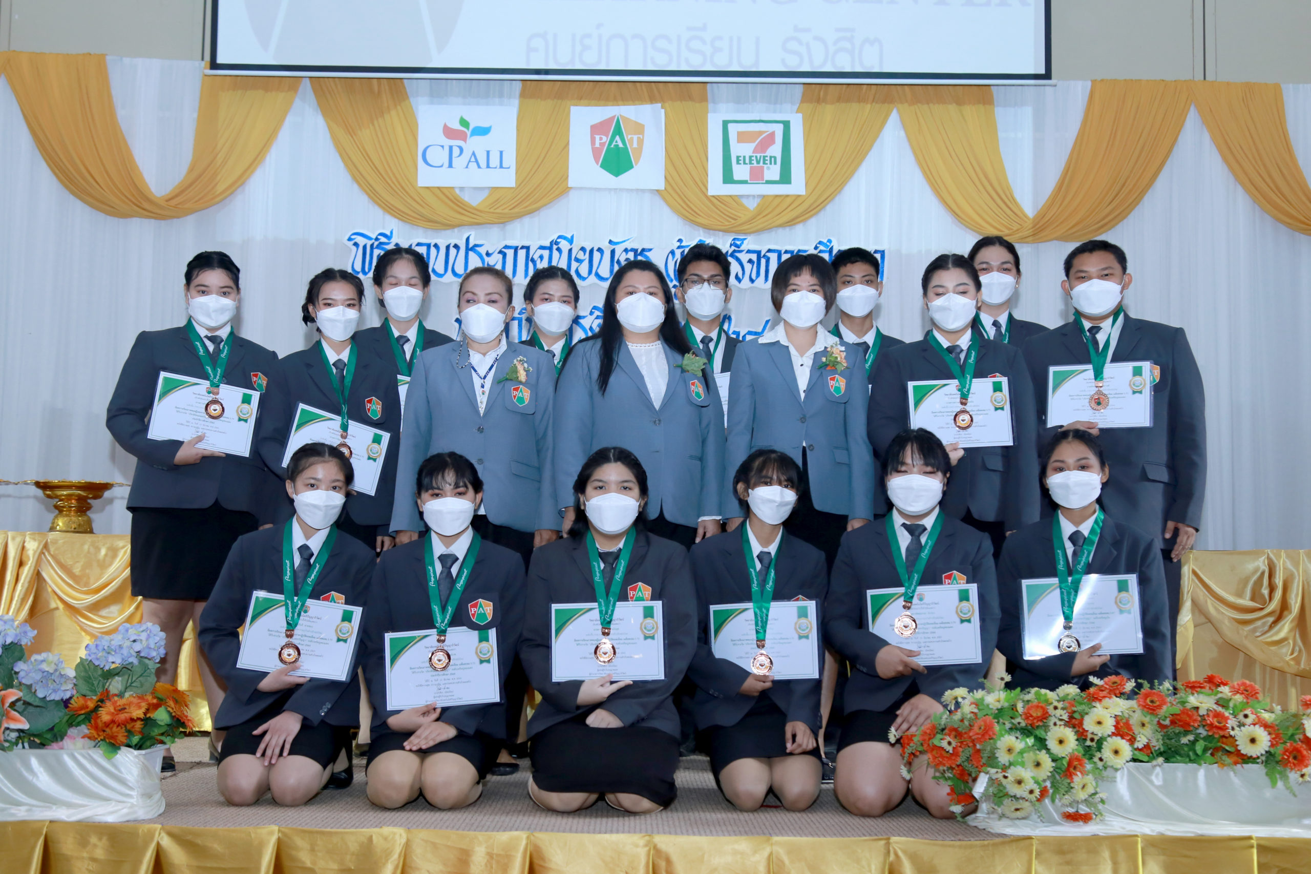 7 เมษายน 2565 ศูนย์การเรียนปัญญาภิวัฒน์ รังสิต จัดพิธีมอบใบประกาศนียบัตร ประจำปีการศึกษา 2564 ให้กับนักเรียนระดับประกาศนียบัตรวิชาชีพ (ปวช.) ชั้นปีที่ 3 สาขาวิชาธุรกิจค้าปลีก จำนวนทั้งสิ้น 154 คน โดยได้รับเกียรติจาก ดร.กชพรรณ บุญงามสม ผู้อำนวยการสำนักงานเขตพื้นที่การศึกษา ประถมศึกษาปทุมธานี เขต 2 เป็นประธานในพิธีมอบใบประกาศนียบัตรแด่ผู้สำเร็จการศึกษา พร้อมด้วยคุณนิภาพร เสนสกุล ผู้จัดการภาคการศึกษา , คุณนงนุช ไทยแท้ หัวหน้าแผนกพัฒนาวินัย , คุณนิวัฒน์ ศรีเอี่ยม เจ้าหน้าที่สวัสดิการ , คุณจิราภรณ์ บัวเผื่อน ผู้จัดการศูนย์การเรียนปัญญาภิวัฒน์ รังสิต , คุณสุทธิโยธิน มณีวงศ์ ผู้จัดการศูนย์การเรียน คลองสาน ร่วมแสดงความยินดี เพื่อสร้างความภาคภูมิใจ ตลอดจนการสร้างขวัญกำลังใจให้แก่ผู้สำเร็จการศึกษา ในการก้าวสู่ชีวิตการศึกษาต่อ ชีวิตการทำงาน และการดำเนินชีวิตสำหรับเป็นพลเมืองที่ดีของสังคม รวมถึงเป็นแบบอย่างที่ดีให้กับนักเรียนทุกคน ณ โรงแรมธาราแกรนด์ รีสอร์ท แอนด์ สปา
