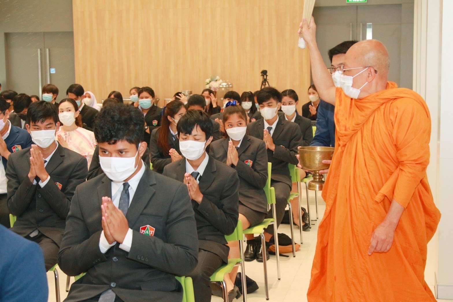 ผู้ช่วยกรรมการผู้จัดการ ศูนย์ HR Operations1 , คุณโตมร จันทรา ผู้จัดการทั่วไปอาวุโสสำนักประสานรัฐกิจ , คุณเดโช ปลื้มใจ ผู้จัดการทั่วไปอาวุโสสำนักกลยุทธ์งานบุคคล บริษัท ซีพีแรม จำกัด และคณะผู้บริหาร คณะที่ปรึกษา บุคลากร ครู นักเรียนนักศึกษาเข้าร่วมพิธี โดยโอกาสมหามงคลฤกษ์ เวลา 9 นาฬิกา 9 นาที เริ่มพิธีสักการะศาลพระภูมิเจ้าที่ประจำวิทยาลัยฯ , พิธีสวดดุอาร์ , ปาฐกถาพิเศษ โดยประธานในพิธี , ฟังบรรยายธรรม จากพระปัญญานันทมุนี เจ้าอาวาสวัดชลประทานรังสฤษดิ์ พระอารามหลวง และทำบุญเลี้ยงเพลพระ จำนวน 9 รูป เพื่อความเป็นสิริมงคล และสร้างขวัญกำลังใจในการทำงาน อีกทั้งเพื่อความเจริญรุ่งเรืองและความก้าวหน้าในการร่วมกันขับเคลื่อนพัฒนาองค์กรอย่างยั่งยืน เดินหน้าสร้างโอกาสทางการศึกษาและการมีงานทำที่มั่นคงให้กับเด็กและเยาวชนไทยอย่างต่อเนื่อง ตามปรัชญาการจัดการศึกษาของวิทยาลัยฯ “มุ่งสร้างเยาวชนสู่มืออาชีพ”