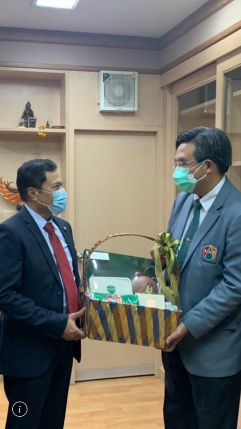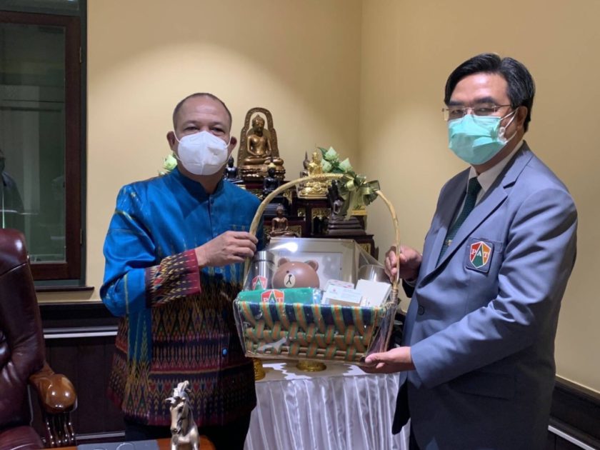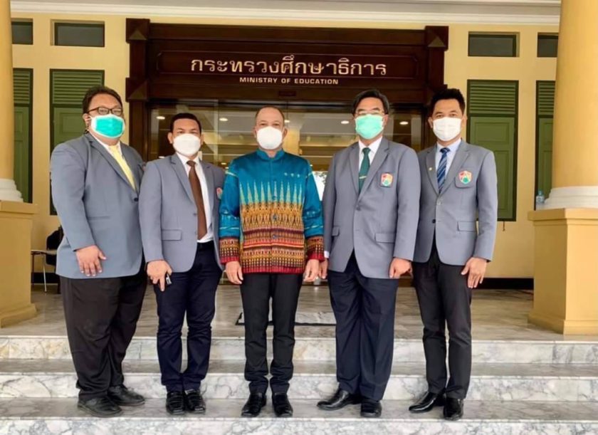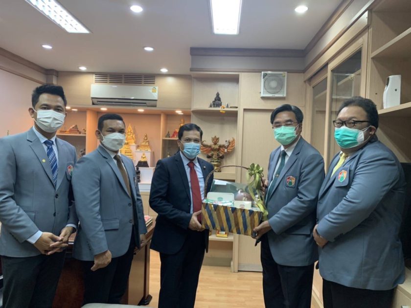 วันที่ 8 กันยายน 2564 เวลา 8.00 น. อาคารราชวัลลภ นายวิเชียร เนียมน้อม ผู้แทนผู้รับใบอนุญาตและผู้อำนวยการวิทยาลัยฯ พร้อมด้วย ดร.ฉัชร์ภิมุก อภินันท์โชติสกุล ผู้อำนวยการสำนักความร่วมมือ และคณะผู้บริหารวิทยาลัยเทคโนโลยีปัญญาภิวัฒน์ เดินทางเข้ามอบกระเช้าเพื่อร่วมแสดงความยินดี กับนายสมใจ วิเศษทักษิณ ผู้อำนวยการเขตพื้นที่การศึกษามัธยมศึกษา กรุงเทพมหานคร และอดีตผู้อำนวยการโรงเรียนจตุรมิตร จ.ขอนแก่น หนึ่งในสถานศึกษาในความร่วมมือของบริษัทซีพีออลล์ จำกัด มหาชน ที่ร่วมมือกันส่งเสริมและให้โอกาสทางด้านการศึกษา ซึ่งปัจจุบันได้รับการแต่งตั้งให้ดำรงตำแหน่งผู้ช่วยปลัดกระทรวงศึกษาธิการ และเวลา 9.00 น. ณ อาคารสำนักงานคณะกรรมการการอาชีวศึกษา คณะผู้บริหารวิทยาลัยฯ ได้มอบกระเช้าแสดงความยินดี กับนายอรรถพล สังขวาสี รองเลขาธิการคณะกรรมการการอาชีวศึกษา (กอศ.) ที่ได้รับการแต่งตั้งให้ดำรงตำแหน่ง เลขาธิการสภาการศึกษา (สกศ.)