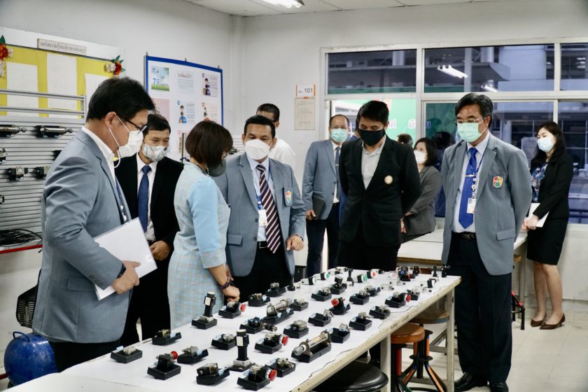 11 มีนาคม 2565 – วิทยาลัยเทคโนโลยีปัญญาภิวัฒน์ นำโดยคุณวิเชียร เนียมน้อม ผู้แทนผู้รับใบอนุญาตและผู้อำนวยการวิทยาลัยฯ คุณวรเชษฐ์ ธรรมวงศ์ ผู้อำนวยการสำนักวิชาการ ดร.ฉัชร์ภิมุก อภินันท์โชติสกุล ผู้อำนวยการสำนักความร่วมมือ ร่วมให้การต้อนรับคุณก้านทิพย์ ชาติวงศ์ ผู้อำนวยการสำนักติดตามและประเมินผลการอาชีวศึกษาปฏิบัติหน้าที่ผู้อำนวยการสำนักบริหารการอาชีวศึกษาเอกชนประธานคณะกรรมการตรวจความพร้อม และผู้ทรงคุณวุฒิและผู้เชี่ยวชาญจากหน่วยงานภาครัฐ เข้าร่วมประชุมและตรวจเยี่ยมวิทยาลัยเทคโนโลยัปัญญาภิวัฒน์ในการเตรียมความพร้อมสำหรับการจัดการเรียนการสอนหลักสูตรสาขาวิชาไฟฟ้ากำลังของวิทยาลัยฯ เพื่อให้การพิจารณาการขอเปลี่ยนแปลงเกี่ยวกับการดำเนินกิจการของสถานศึกษาเป็นไปด้วยความเรียบร้อย จึงได้ตรวจเยี่ยมความพร้อมของวิทยาลัยฯ ด้านอาคารสถานที่ ห้องเรียน ห้องปฏิบัติการเครื่องมืออุปกรณ์ที่ใช้ในการจัดการเรียนการสอน หนังสือเรียน หนังสืออ่านเสริมเพื่อการค้นคว้า ความพร้อมของครูผู้สอน แผนการเรียนตามสาขาวิชาสาขางานที่ขออนุญาตรวมถึงเอกสารสำหรับการขอเพิ่มหลักสูตรระบบทวิภาคี