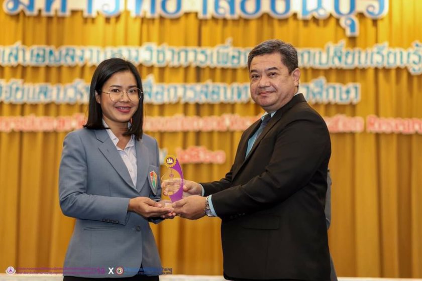 โอกาสนี้ ว่าที่ ร.ต.วรเชษฐ์ ธรรมวงศ์ ผู้อำนวยการสำนักวิชาการ วิทยาลัยเทคโนโลยีปัญญาภิวัฒน์ ได้นำคณะครูร่วมเสนอผลงานทางวิชาการ โดยเปิดเผยว่าวิทยาลัยฯให้ความสำคัญต่อการพัฒนาศักยภาพของครูผู้สอนมาอย่างต่อเนื่องเพื่อให้ครูมีวิสัยทัศน์ มีการพัฒนาตนเองคิดค้นงานวิจัยและนวัตกรรมสื่อสารการสอนทางอาชีวศึกษา และเพิ่มประสิทธิภาพ ประสิทธิผลในระบบการเรียนการสอนโดยในปีนี้วิทยาลัยฯส่งผลงานนำเสนอได้รับรางวัลทั้งสิ้น 60 ผลงาน เป็นรางวัลผลงานวิจัยประเภทสื่อคอมพิวเตอร์ ระดับดีเยี่ยม 1ผลงานคือ การพัฒนาบทเรียนออนไลน์เรื่อง สารสังเคราะห์และผลิตภัณฑ์ผ่านแอปพลิเคชั่น Nearpod สำหรับนักศึกษาระดับประกาศนียบัตรวิชาชีพชั้นสูง ปีที่1/2 ผลงานโดย น.ส.นฤมล บุญส่ง ครูผู้สอนรายวิชาวิทยาศาสตร์ ส่วนรางวัลอื่นๆประกอบด้วยรางวัลระดับดีมาก จำนวน 19ผลงาน , ระดับดี จำนวน 24ผลงาน , ระดับผ่าน จำนวน 16ผลงาน และยังได้รับโล่รางวัลการนำเสนอยอดเยี่ยมอีก 4 ผลงาน
