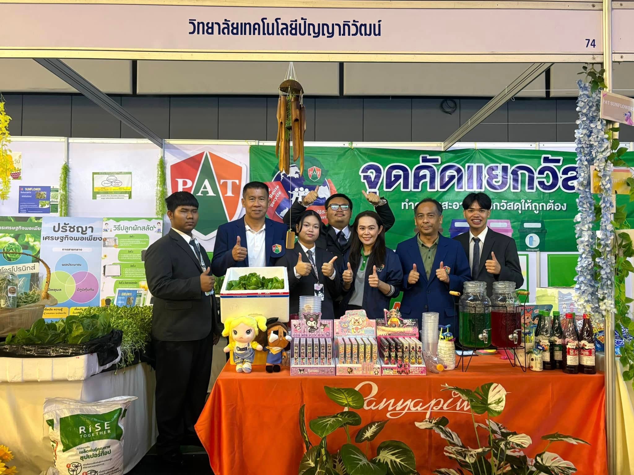 8-9 กุมภาพันธ์ 2568 วิทยาลัยเทคโนโลยีปัญญาภิวัฒน์ โดยนายอำนาจ อ้วนเจริญ ผู้อำนวยการสำนักกิจการนักเรียน นักศึกษา และคณะ พร้อมตัวแทนนักเรียน จำนวน 6 คน ได้จัดบูธเศรษฐกิจพอเพียง ต้นอ่อนทานตะวัน ผักไฮโดรโปนิกส์ บูธ PAT อาชีวไร้ถัง การคัดแยกวัสดุให้ถูกประเภท PAT GO GREEN การใช้ถุงผ้า ไม่ใช้ถุงพลาสติก บูธผลิตภัณฑ์น้ำผึ้งผสมมะนาว น้ำมะพร้าวและบูธสรรหาฯ ประชาสัมพันธ์วิทยาลัยฯ ในกิจกรรมสิ่งแวดล้อมศึกษา ตามโครงการคลองสวยน้ำใส GREEN & CLEAN โรงเรียนสีเขียว ปีที่ 6 “ร่วมคิด ร่วมทำ ร่วมปรับเปลี่ยน สู่ความยั่งยืนสู่ความยั่งยืนของไทยและโลกของเรา จัดโดยองค์การบริหารส่วนจังหวัดนนทบุรี พลังแห่งการสร้างสรรค์สิ่งแวดล้อมของเยาวชนนนทบุรี ณ เซ็นทรัล เวสต์เกต จังหวัดนนทบุรี โดยมี นางจีระกิต อิศรวิชิตชัยกุล รองปลัดองค์การบริหารส่วนจังหวัดนนทบุรี ดร.กมล รอดคล้าย สมาชิกวุฒิสภา, นายโกเมศ กลั่นสมจิตต์ รองเลขาธิการคณะกรรมการส่งเสริมการศึกษาเอกชน, นายณัฐชัย ใจเย็น ศึกษาธิการจังหวัดนนทบุรี พร้อม ผู้แทนจากสำนักงานเขตพื้นที่การศึกษาประถมศึกษา และมัธยมศึกษานนทบุรี, นายกสมาคมผู้ประกอบวิชาชีพบริหารการศึกษาเอกชนนนทบุรี, ผู้แทนจากสำนักงานสิ่งแวดล้อมและควบคุมมลพิษที่ 6, ผู้แทนจากสำนักงานทรัพยากรธรรมชาติและสิ่งแวดล้อม, ผู้แทนจากสำนักงานส่งเสริมการปกครองท้องถิ่นจังหวัดนนทบุรี ตลอดจน ผู้อำนวยการโรงเรียน / ผู้อำนวยการกอง ครู นักเรียน เข้าร่วมกิจกรรมมากมาย