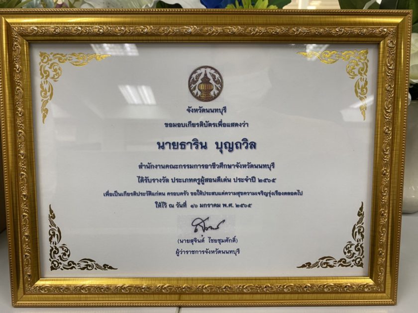 3. คุณธาริน บุญถวิล ครูแผนกวิชาพื้นฐานสามัญ ได้รับรางวัลประเภทครูผู้สอนดีเด่น ประจำปี 2565