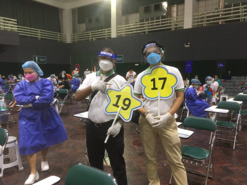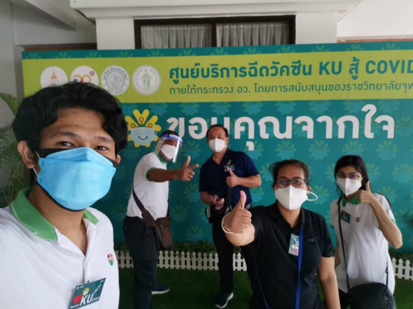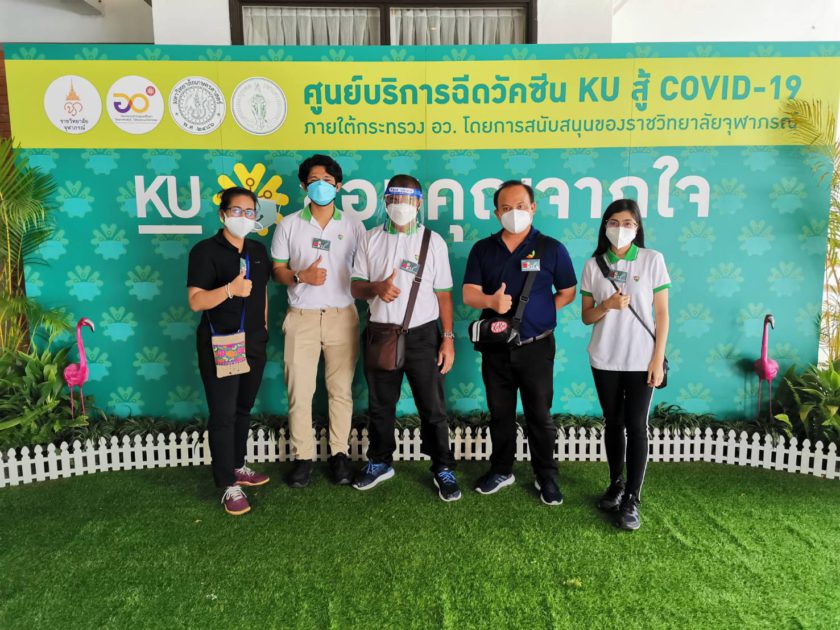 ซึ่งคณะจิตอาสาได้รับมอบหมายให้ปฏิบัติหน้าที่แนะนำผู้รับการฉีดวัคซีนและแสดงการยกธงแจ้งจุดเคลื่อนย้ายตำแหน่ง การให้บริการฉีดวัคซีนกำหนดบริการรอบละ 500 คน จัดเป็นแถว 25 แถวๆละ 20 คน คณะจิตอาสายังทำหน้าที่แจ้งหน้าที่ทำการตรวจวัดความดันและคอยสังเกตอาการความผิดปกติของผู้รับการฉีดวัคซีนอย่างใกล้ชิด เมื่อฉีดวัคซีนเรียบร้อยแล้วจะให้พักรอดูอาการ25นาที จากนั้นคณะจิตอาสาจะแจ้งเจ้าหน้าที่มาเก็บบันทึกข้อมูลแล้วอนุญาตให้ผู้รับการฉีดวัคซีนเดินทางกลับได้ ต่อจากนั้นจึงแจ้งทีมแม่บ้านมาทำความสะอาดเก้าอี้ที่นั่งก่อนจะเรียกผู้รับการฉีดวัคซีนคนต่อไปเข้ามานั่งรอเรียกตามลำดับคิว การปฏิบัติหน้าที่คณะจิตอาสาครั้งนี้นับเป็นความภาคภูมิใจของทุกคนที่ได้เสียสละอุทิศตนในการทำความดีช่วยเหลือสังคมในสถานการณ์การป้องกันโรค COVID-19 ในขณะนี้ ซึ่งคณะจิตอาสาทุกๆคนพร้อมที่จะร่วมปฏิบัติงานกับศูนย์บริการฉีดวัคซีน KU สู้ COVID-19 ในโอกาสต่อๆไปด้วย ดูแลของทีมแพทย์ พยาบาล และบุคลากรทางการแพทย์ของราชวิทยาลัยจุฬาภรณ์