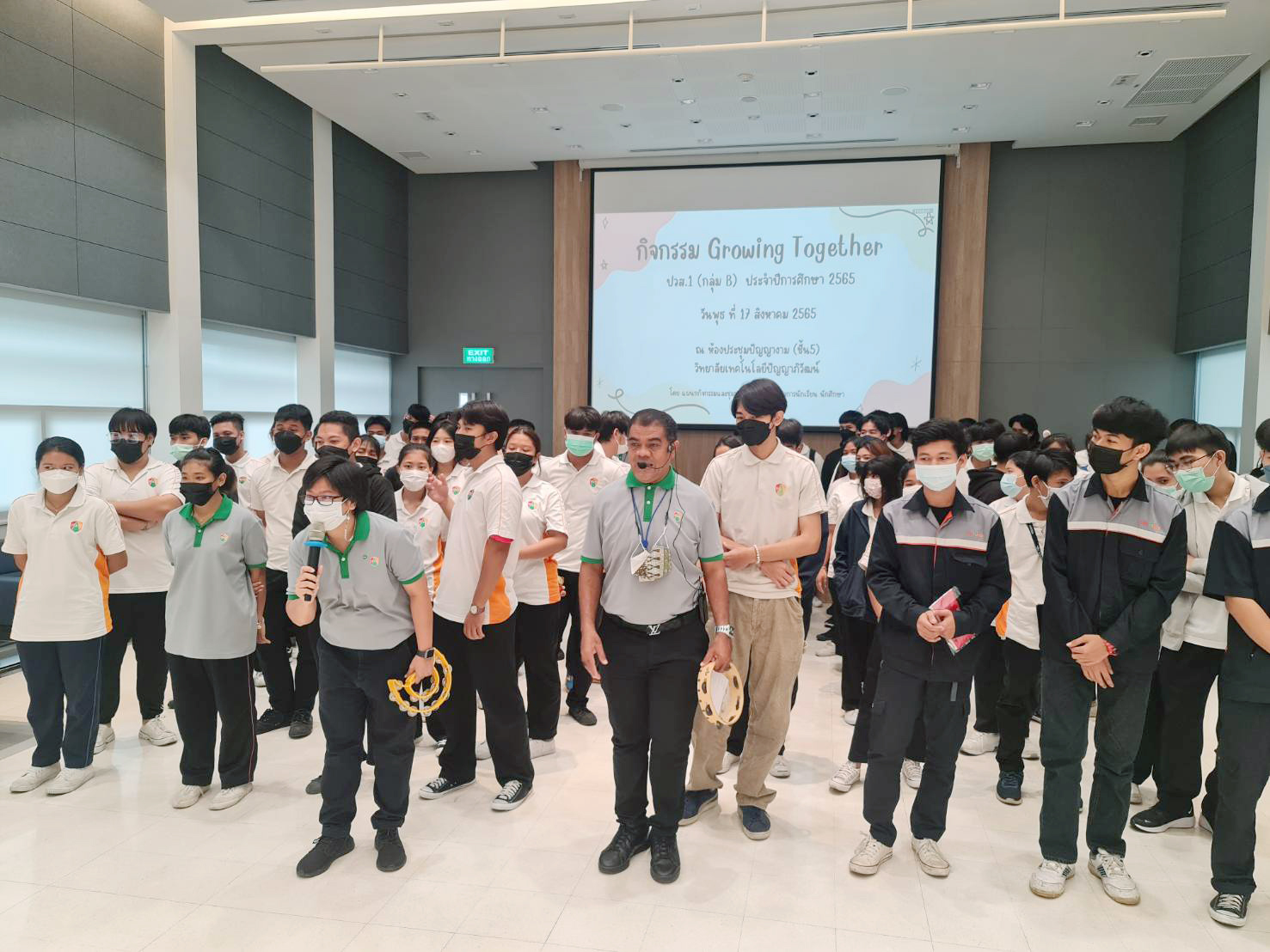 17 ส.ค. 65 วิทยาลัยเทคโนโลยีปัญญาภิวัฒน์จัดกิจกรรม Growing Together ที่ห้องประชุมปัญญางาม วิทยาลัยเทคโนโลยีปัญญาภิวัฒน์ คุณวิเชียร เนียมน้อม ผู้แทนผู้รับใบอนุญาตและผู้อำนวยการวิทยาลัยเทคโนโลยีปัญญาภิวัฒน์ เป็นประธานเปิดโครงการกิจกรรม Growing Together ประจำปีการศึกษา 2565 นักเรียนระดับชั้นประกาศนียบัตรวิชาชีพชั้นสูง(ปวส.)1กลุ่มB