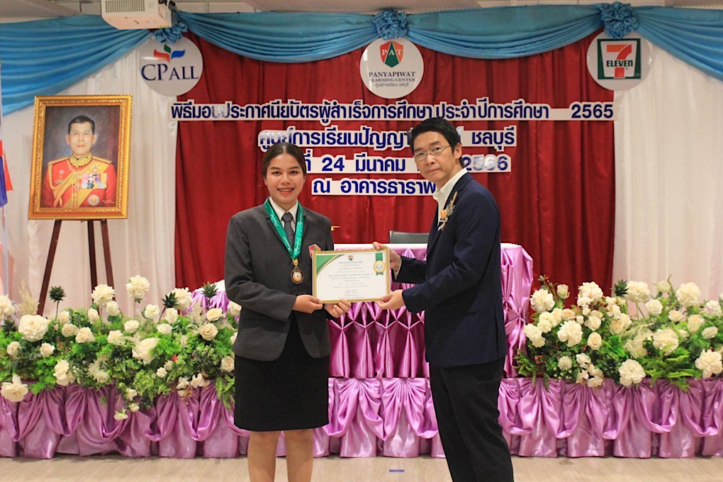 เมื่อเร็ว ๆ นี้  ศูนย์การเรียนปัญญาภิวัฒน์ ชลบุรี จัดพิธีมอบประกาศนียบัตร แก่ผู้สำเร็จการศึกษา ประจำปีการศึกษา 2565 โดยได้รับเกียรติจาก นายพิทยา นามบุญลือ ผู้อำนวยการสำนักงานเขตพื้นที่การศึกษา ประถมศึกษาชลบุรี เขต 3 เป็นประธานในพิธีมอบประกาศนียบัตร โดยมี คุณพรเทพ พลับนิ่ม ผู้อำนวยการศูนย์การเรียนปัญญาภิวัฒน์ คุณพงศ์วิจักขณ์ ตันประเสริฐ ผู้จัดการภาคการศึกษา  คณะครู บุคลากรศูนย์การเรียนปัญญาภิวัฒน์ ชลบุรี ร่วมในพิธี  พร้อมทั้งได้รับเกียรติจาก คุณธนากรณ์ ลีวัฒนกุล ผู้จัดการฝ่ายทรัพยากรบุคคลปฏิบัติการ บริษัท ซีพี ออลล์ จำกัด (มหาชน) ให้เกียรติมอบรางวัล “เพชรปัญญา” สำหรับนักเรียนที่มีผลการเรียนดี การจัดงานในครั้งนี้มีแขกผู้มีเกียรติ ผู้บริหารสถานศึกษาจากสำนักงานเขตพื้นที่การศึกษาประถมศึกษาชลบุรี เขต 3 ผู้บริหารบริษัท ซีพี ออลล์ จำกัด (มหาชน) ผู้บริหารจากวิทยาลัยเทคโนโลยีปัญญาภิวัฒน์และศูนย์การเรียนปัญญาภิวัฒน์ ตลอดจนผู้ปกครองเข้าร่วมแสดงความยินดีกับผู้สำเร็จการศึกษา ณ อาคารธาราพัทยา จังหวัดชลบุรี โดยขอให้นำวิชาความรู้ ทักษะและประสบการณ์จากการเรียนไปประกอบอาชีพด้วยความขยัน หมั่นเพียร มีความซื่อสัตย์สุจริต และประสบความสำเร็จในหน้าที่การงานต่อไป