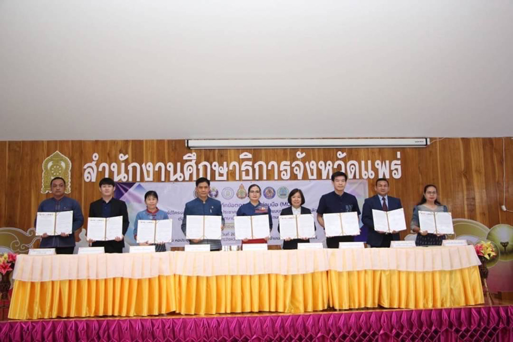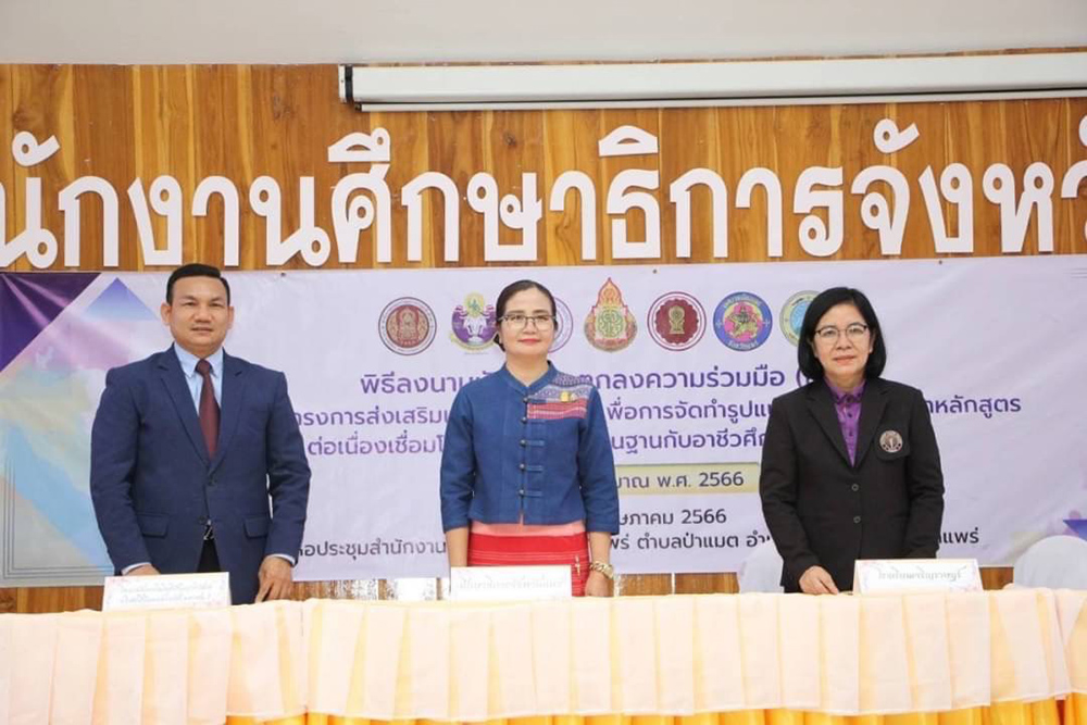 26 พฤษภาคม 2566 นางรุ่งทิพย์ ทาวดี ศึกษาธิการจังหวัดแพร่ เป็นประธานในพิธีลงนามบันทึกข้อตกลงความร่วมมือ (MOU) ภายใต้โครงการส่งเสริมเวทีและประชาคม เพื่อการจัดทำรูปแบบและการพัฒนาหลักสูตรต่อเนื่อง เชื่อมโยงการศึกษาขั้นพื้นฐานกับอาชีวศึกษาและอุดมศึกษา ประจำปีงบประมาณ 2566 โดยมีหน่วยงานการศึกษาภาคีเครือข่ายในจังหวัดแพร่ เข้าร่วมพิธีลงนาม 8 แห่ง ประกอบด้วย สำนักงานศึกษาธิการจังหวัดแพร่ สำนักงานเขตพื้นที่การศึกษามัธยมศึกษาแพร่ สำนักงานคณะกรรมการส่งเสริมการศึกษาเอกชน เทศบาลเมืองแพร่ องค์การบริหารส่วนจังหวัดแพร่ สำนักงานอาชีวศึกษาจังหวัดแพร่ มหาวิทยาลัยการกีฬาแห่งชาติวิทยาเขตลำปาง วิทยาลัยเทคโนโลยีปัญญาภิวัฒน์ บริษัทซีพีออลล์จำกัด (มหาชน) และมีสถานศึกษาที่เป็นคู่พัฒนาหลักสูตรต่อเนื่องเชื่อมโยงขั้นพื้นฐาน ขั้นอาชีวศึกษา และขั้นอุดมศึกษา เข้าร่วมโครงการจำนวน 17 แห่ง โดยมี ดร.ฉัชร์ภิมุก อภินันท์โชติสกุล ผู้อำนวยการบริหารความร่วมมือและพัฒนาธุรกิจ ผู้แทนวิทยาลัยเทคโนโลยีปัญญาภิวัฒน์ และบริษัท ซีพี ออลล์ จำกัด( มหาชน) ได้ร่วมลงนาม พร้อมกล่าวว่า โครงการเชื่อมโยงเครือข่ายทางการศึกษาในพื้นที่จังหวัดแพร่นี้ ทางบริษัท ซีพี ออลล์ดำเนินการเชื่อมโยงสนับสนุนและจัดสถานศึกษาเข้าร่วมเป็นเครือข่ายความร่วมมือ มาตั้งแต่ปีการศึกษา 2559 โดยร่วมกันจัดการศึกษาห้องแผนการเรียนอาชีพในโรงเรียนมัธยมศึกษาตอนปลาย จัดรูปแบบการเรียนการสอนทวิภาคีคือการเรียนควบคู่กับการทำงานในสถานประกอบการตามหลักการ Work Based Learning ช่วยส่งเสริมให้นักเรียนมีความรู้ ทักษะในการเรียนและมีรายได้ระหว่างเรียน สามารถแบ่งเบาภาระของพ่อแม่ ผู้ปกครองได้
