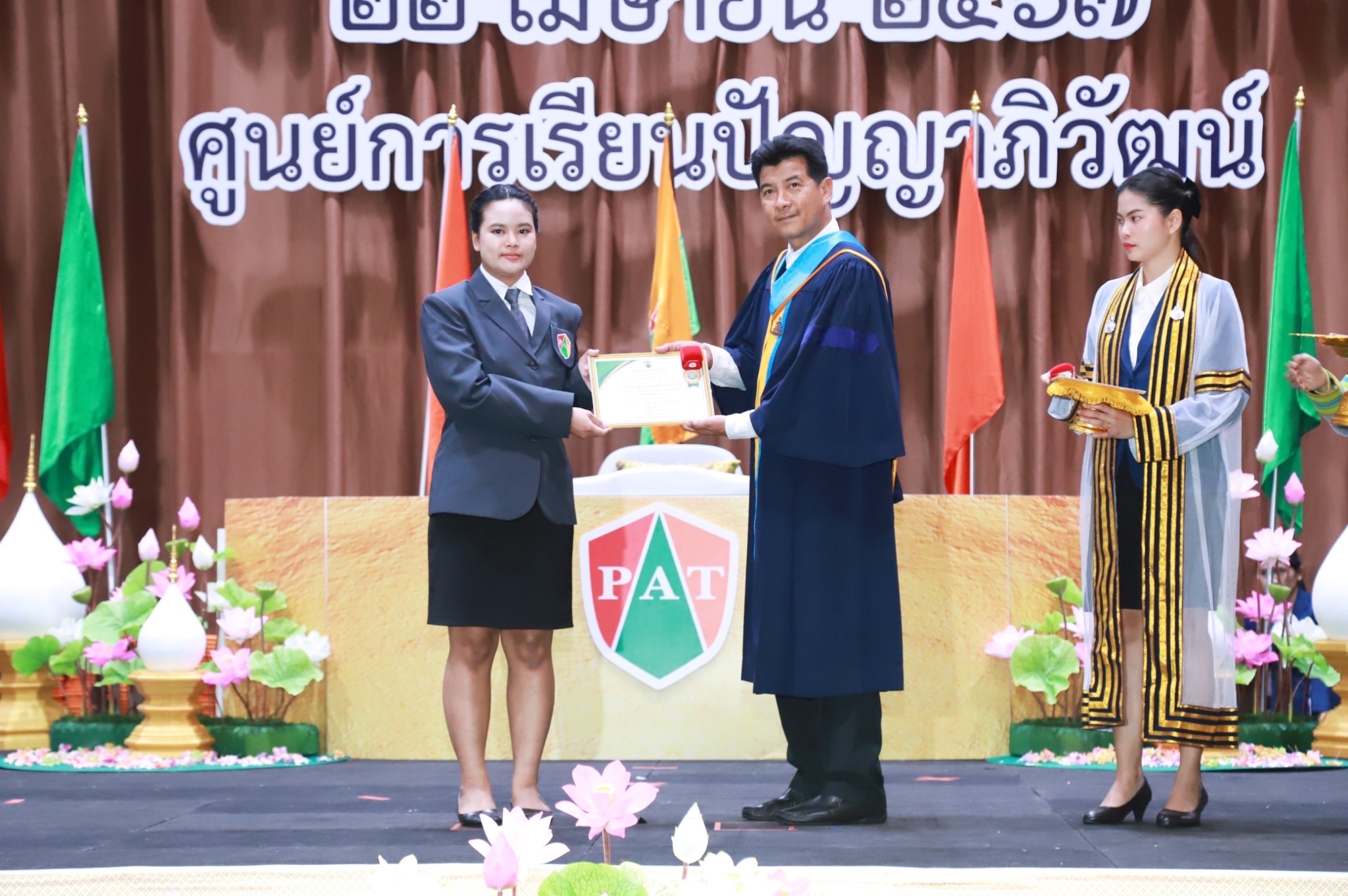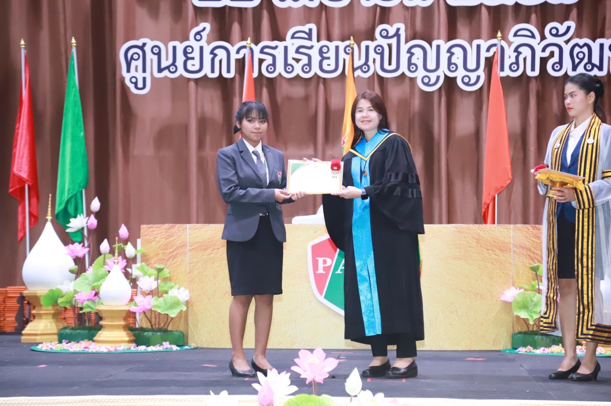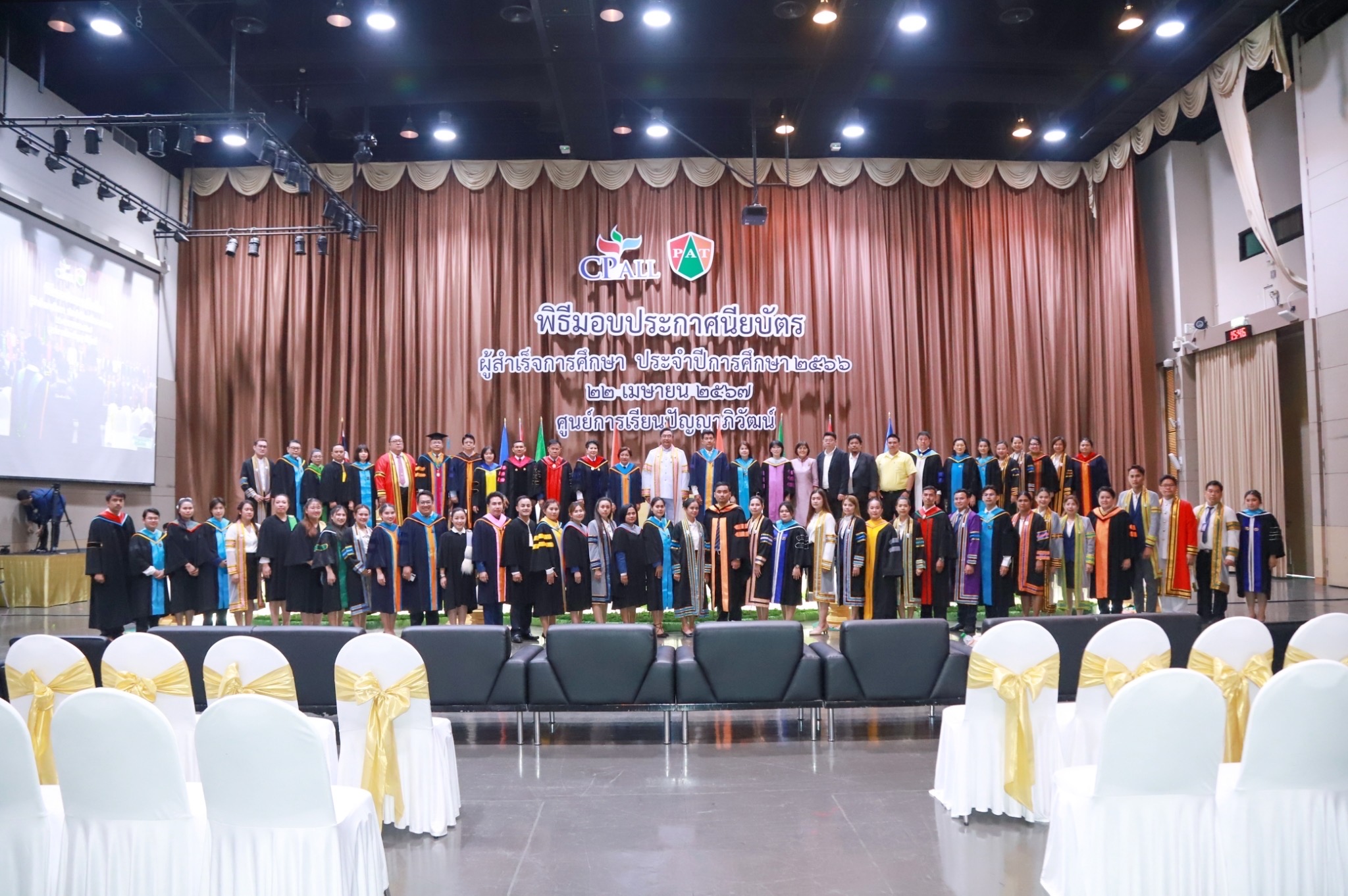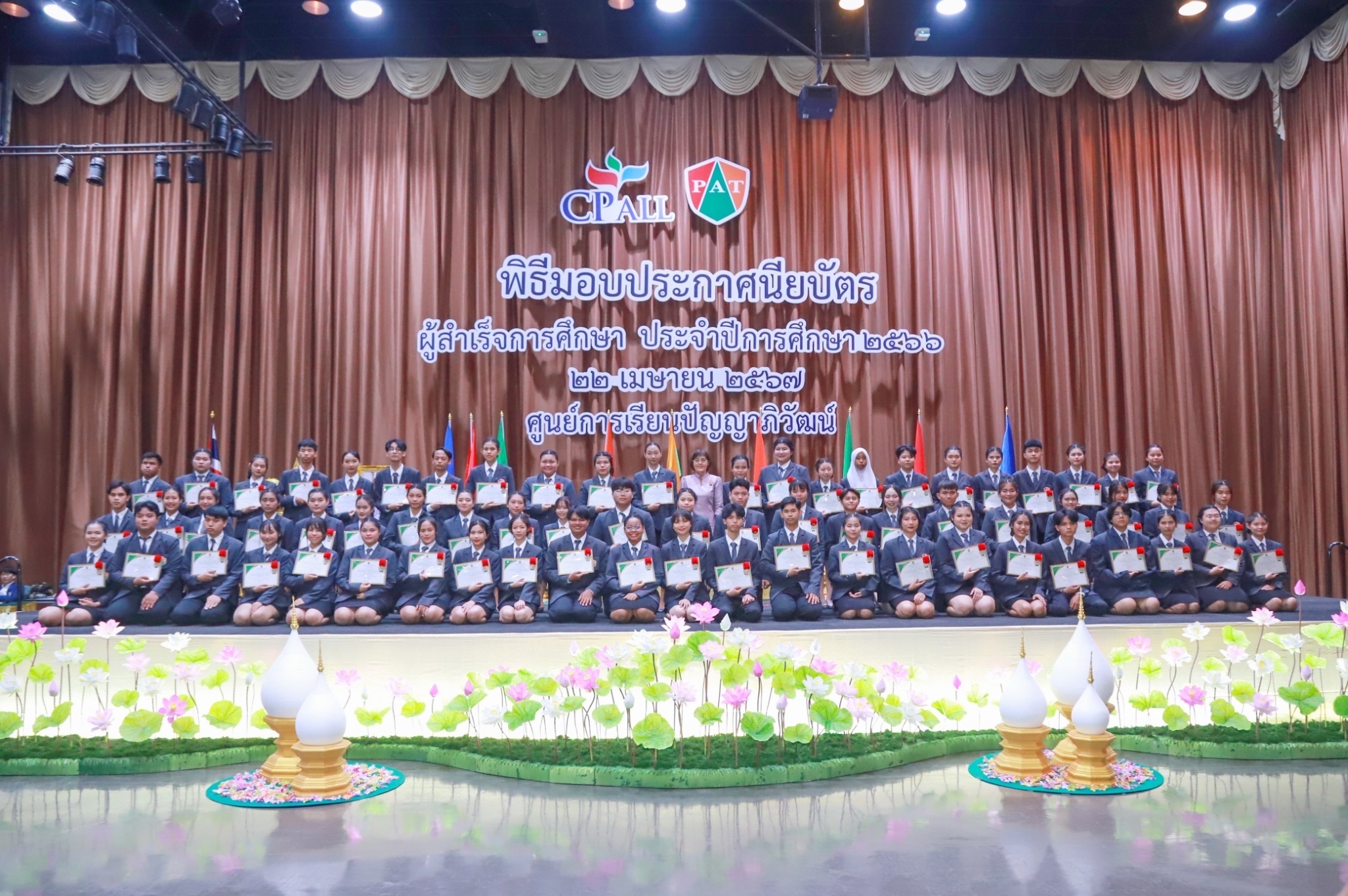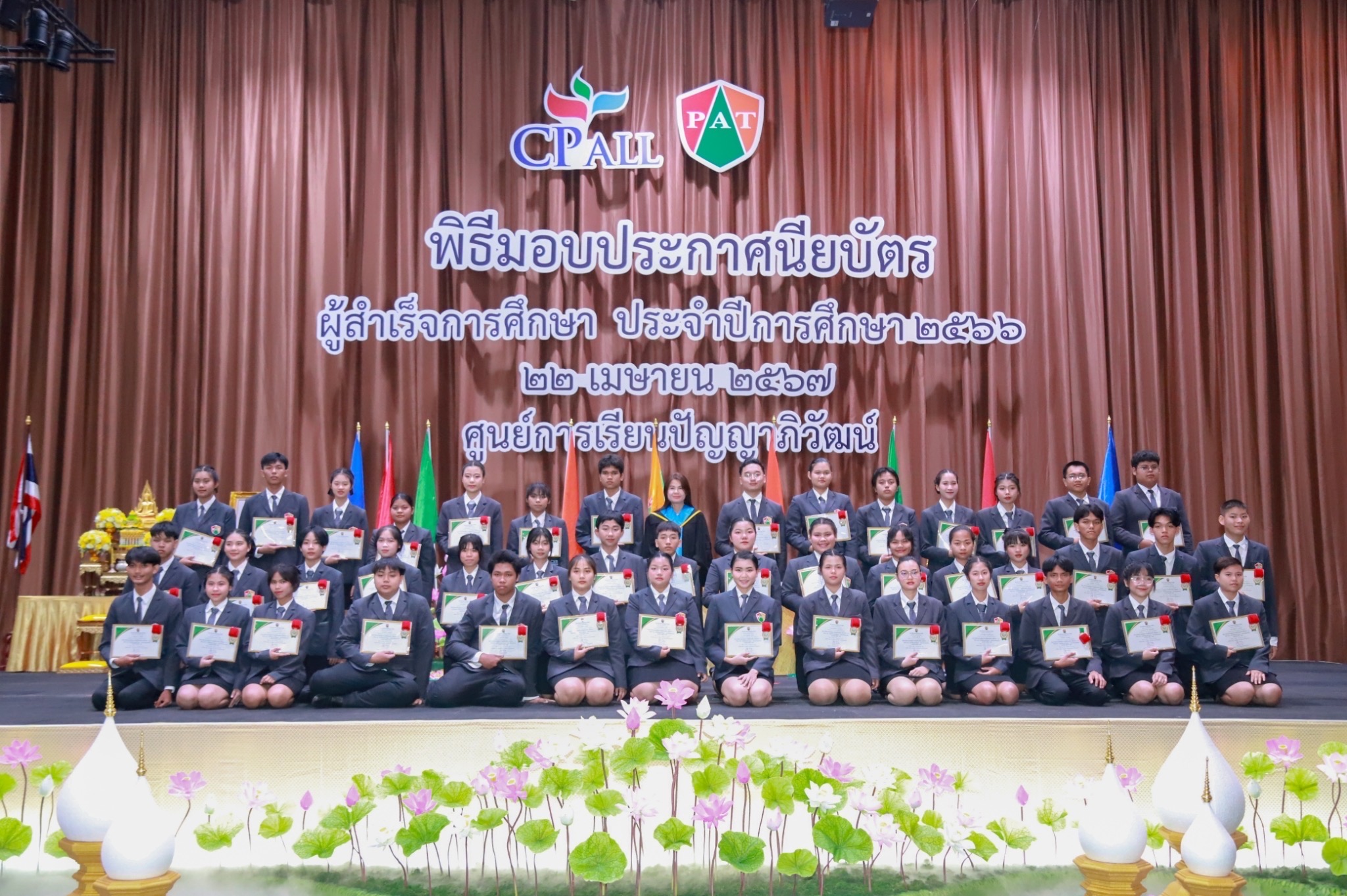 22 เมษายน 2566 ศูนย์การเรียนปัญญาภิวัฒน์ 10 ศูนย์ในพื้นที่กรุงเทพมหานคร จัดพิธีมอบประกาศนียบัตรแก่ผู้สำเร็จการศึกษา ประจำปี2566 โดยนายวิเชียร เนียมน้อม ผู้แทนผู้รับใบอนุญาตและผู้อำนวยการวิทยาลัยเทคโนโลยีปัญญาภิวัฒน์ เป็นประธานในพิธี พร้อมด้วยผู้บริหารวิทยาลัยเทคโนโลยีปัญญาภิวัฒน์ ผู้จัดการศูนย์การเรียนปัญญาภิวัฒน์ 10 ศูนย์ในพื้นที่กรุงเทพมหานครร่วมพิธี โอกาสนี้ ดร.ก้านทิพย์ ชาติวงศ์ กรรมการสถานศึกษาและผู้บริหารบริษัท ซีพีออลล์ จำกัด(มหาชน) ได้มอบรางวัลเพชรปัญญา ระดับเหรียญทอง เหรียญเงิน เหรียญทองแดง ให้กับผู้สำเร็จการศึกษาที่มีผลการเรียนยอดเยี่ยมด้วย นายพรเทพ พลับนิ่ม ผู้อำนวยการบริหารศูนย์การเรียนปัญญาภิวัฒน์ กล่าวรายงานว่า ศูนย์การเรียนปัญญาภิวัฒน์10ศูนย์ในพื้นที่กรุงเทพมหานครได้รับอนุญาตจัดตั้งตามระเบียบกระทรวงศึกษาธิการให้เป็นสถานศึกษาอาชีวศึกษาภายใต้สถานประกอบการ จัดการศึกษาระดับประกาศนียบัตรวิชาชีพ(ปวช.)ตามพระราชบัญญัติการศึกษาแห่งชาติ พ.ศ.2542 การดำเนินงานของศูนย์การเรียนปัญญาภิวัฒน์ได้พัฒนาคุณภาพและจัดทำมาตรฐานศูนย์การเรียนตามเกณฑ์ประกันคุณภาพการศึกษา สำนักงานรับรองมาตรฐานและประเมินคุณภาพการศึกษา(องค์การมหาชน) หรือ สมศ. อีกทั้งจัดการเรียนการสอนระบบทวิภาคีเต็มรูปแบบ บูรณาการการเรียนรู้ด้วยประสบการณ์จริง “Work Based Learning “ ใช้การทำงานเปึฐานความรู้ของผู้เรียน ซึ่งปัจจัยความสำเร็จนี้เกิดจากความมุ่งมั่นของสถานศึกษาและสถานประกอบการที่ร่วมมือกันพัฒนาคุณภาพการจัดการศึกษา มุ่งเน้นพัฒนาคุณภาพผู้เรียน โดยยึดหลักการให้ผู้เรียนเป็นศูนย์กลาง บริหารจัดการด้วยหลัก ” เข้าใจ เข้าถึง พัฒนา “ ดูแลรักษาและช่วยเหลือผู้เรียนโดยครูอาชีพตลอดหลักสูตร เพื่อให้ผู้เรียนสำเร็จการศึกษาอย่างมีคุณภาพ พร้อมเข้าสู่สถานประกอบการทำงานที่มั่นคงต่อไป สำหรับผู้สำเร็จการศึกษาเข้ารับประกาศนียบัตรในครั้งนี้มีจำนวนทั้งสิ้น 525 คน ด้านนายวิเชียร เนียมน้อม ได้มอบประกาศนียบัตรและกล่าวแสดงความยินดีกับผู้สำเร็จการศึกษาพ่อ แม่ และผู้ปกครองว่า ผู้สำเร็จการศึกษาทุกคนเป็นผู้ที่มีความซื่อสัตย์ ขยัน อดทน และมุ่งมั่นจนสำเร็จการศึกษาได้ ถือว่าเป็นผู้ที่มีความรู้ มีสติปัญญา รู้จักคิดวิเคราะห์ มีการพัฒนาและแก้ไขปัญหาได้อย่างถูกต้อง เป็นที่ยอมรับของสังคม หลายคนมีความมุ่งหมายในการศึกษาต่อในระดับที่สูงขึ้น และบางคนประสงค์ที่จะไปประกอบอาชีพเพื่อสร้างรายได้ดูแลครอบครัว แต่จุดเริ่มต้นที่สำคัญของการศึ