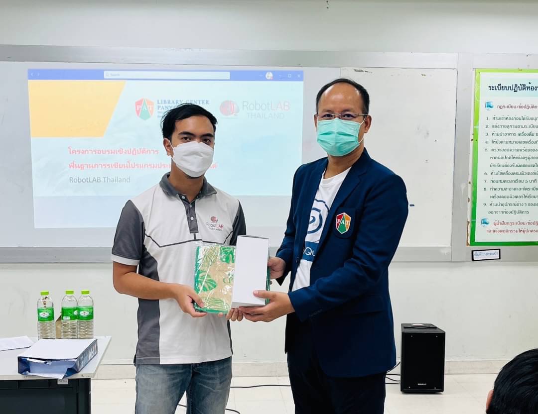 21 กันยายน 2565 สำนักวิชาการ วิทยาลัยเทคโนโลยีปัญญาภิวัฒน์ ร่วมกับ บริษัท ออลล์ เวลเนส จำกัด ธุรกิจในกลุ่มซีพี ออลล์ ทำความร่วมมือในการจัดการอบรมหุ่นยนต์ให้กับนักเรียนนักศึกษาระดับประกาศนียบัตรวิชาชีพ สาขางานไฟฟ้ากำลัง และระดับประกาศนียบัตรวิชาชีพชั้นสูง สาขางานเทคนิควิทยาการนาฬิกา วิทยาลัยเทคโนโลยีปัญญาภิวัฒน์ โดยได้รับเกียรติจากคุณวรเชษฐ์ ธรรมวงศ์ ผู้อำนวยการสำนักวิชาการ กล่าวเปิดการอบรม พร้อมคุณเดชคฤทธิ์ สุขวัฒนโชติ หัวหน้าแผนกวิชาช่างไฟฟ้ากำลัง และคณะครู อาจารย์ร่วมให้การต้อนรับคณะวิทยากรผู้ชำนาญการ คุณอัครวินท์ กุลแก้ว , คุณฐิติวุฒน์ ทรัพย์รุ่งเรือง , คุณธงชัย เจริญศุข เพื่ออบรมให้ความรู้แก่นักเรียนนักศึกษาให้ได้ฝึกการเขียนโปรแกรมควบคุมหุ่นยนต์ในรูปแบบออนไลน์ และฝึกกระบวนการคิด วิเคราะห์ การแก้ปัญหา และต่อยอดสู่งานด้านนวัตกรรมต่อไป