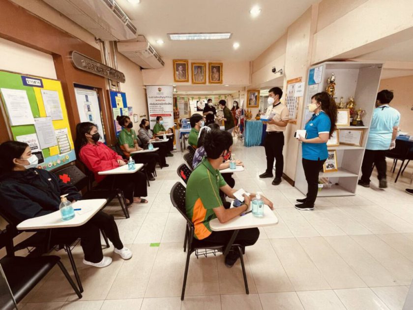 เมื่อวันที่ 20 สิงหาคม 2564 ที่ศูนย์การเรียนปัญญาภิวัฒน์ เพชรเกษม เขตภาษีเจริญ คุณสาวิตรี งามเมืองปัก นักวิชาการสุขาภิบาลชำนาญการ ฝ่ายสิ่งแวดล้อมและสุขาภิบาล สำนักงานเขตภาษีเจริญ ตรวจเยี่ยมดูมาตรการป้องกันโควิด-19 และการคัดกรอง Antigen Test Kid (ATK) ของนักเรียน นักศึกษาที่เตรียมฝึกประสบการณ์วิชาชีพในสถานประกอบการร้าน 7-eleven