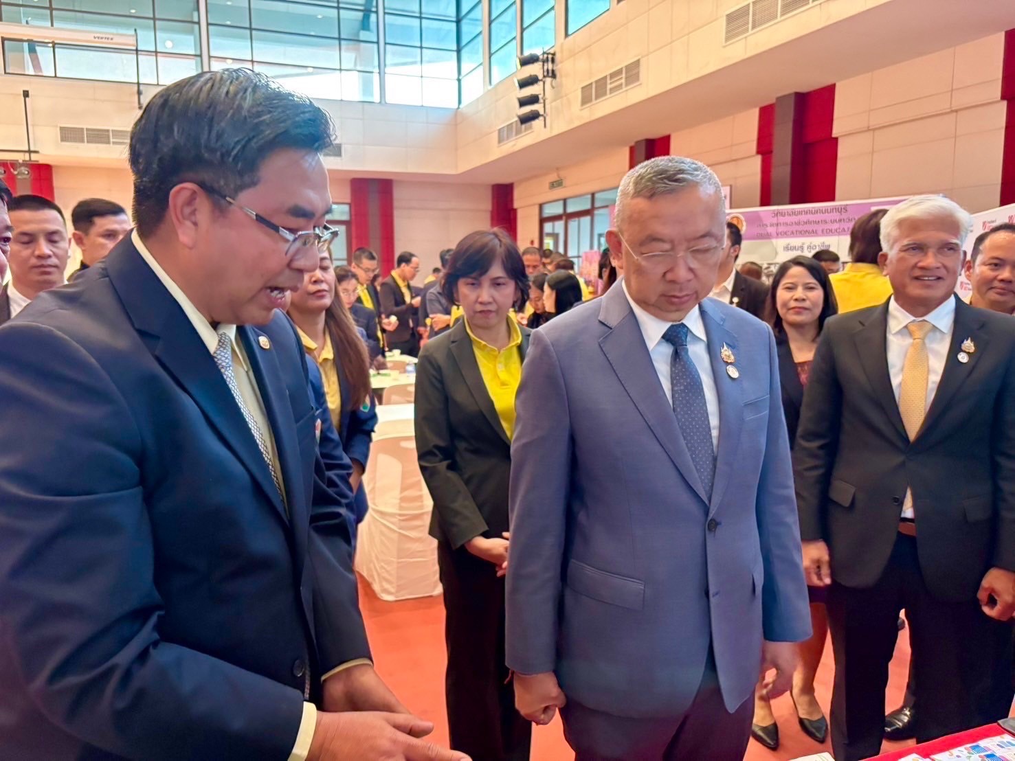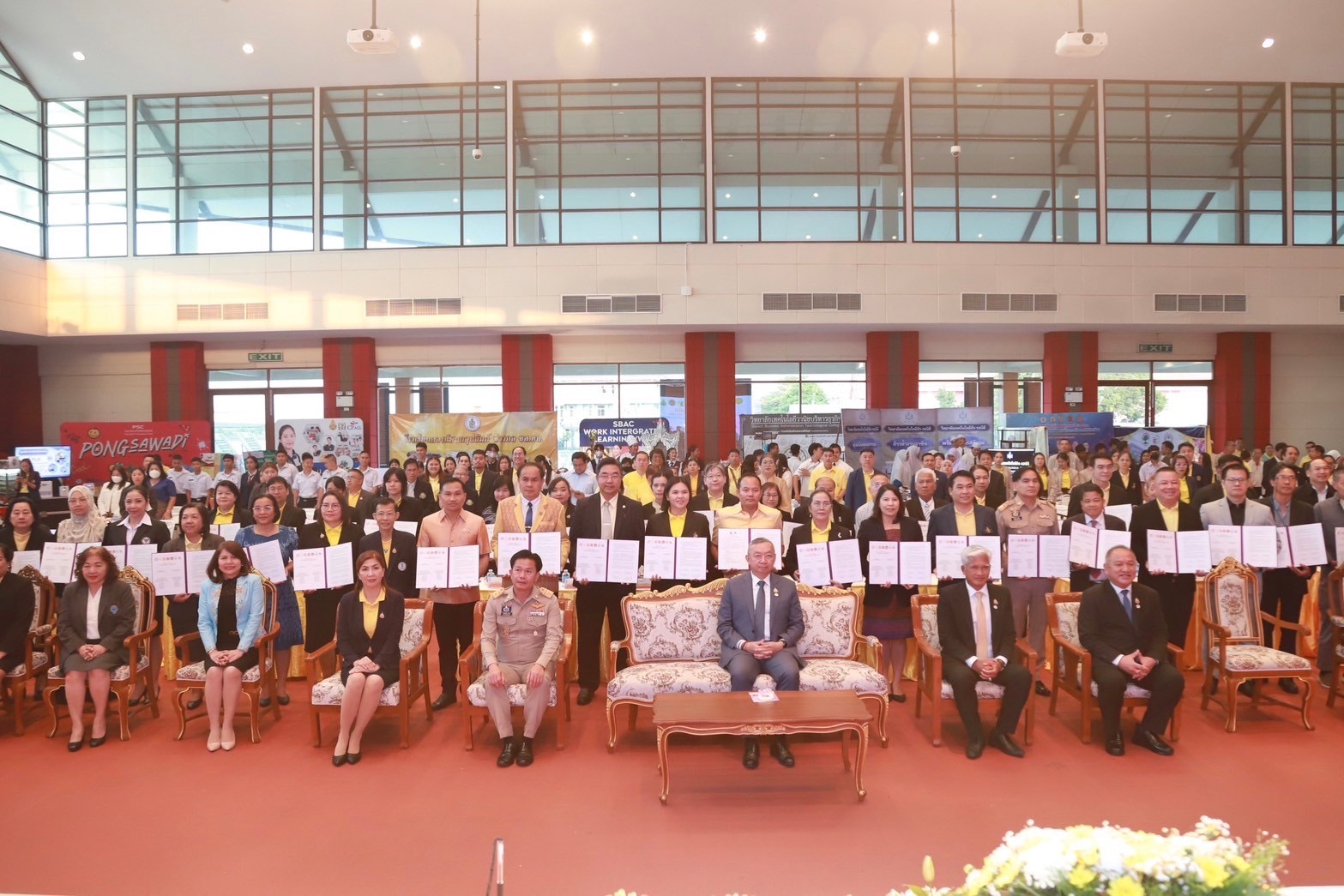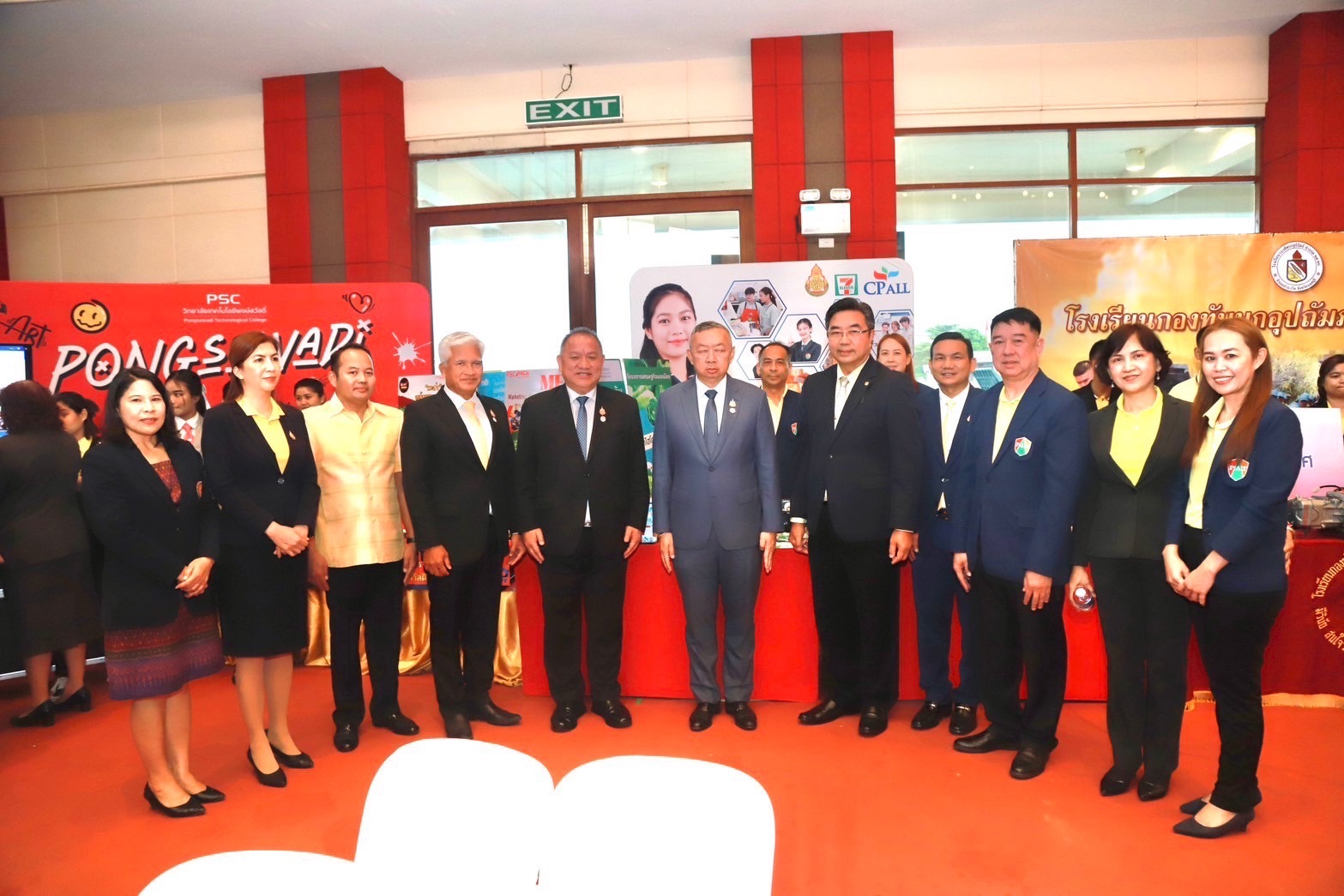 วันที่ 22 ธันวาคม 2567 เวลา 16.00 น. ณ แหล่งสมาคมโรงเรียนทหารขนส่ง (โรงเรียนกองทัพบกอุปถัมภ์ ช่างกล ขส.ทบ.) วิทยาลัยเทคโนโลยีปัญญาภิวัฒน์ โดย นายวิเชียร เนียมน้อม ผู้แทนผู้รับใบอนุญาตและผู้อำนวยการวิทยาลัยฯ ร่วมลงนามบันทึกข้อตกลงความร่วมมือการจัดการเรียนการสอนห้องเรียนอาชีพในสถานศึกษาระดับมัธยมศึกษา ในงาน “มหกรรมการจัดการศึกษาเพื่อการมีงานทำมีอาชีพ เฉลิมพระเกียรติพระบาทสมเด็จพระเจ้าอยู่หัว เนื่องในโอกาสมหามงคลเฉลิมพระชนมพรรษา 6 รอบ” โดยได้รับเกียรติจาก พลตำรวจเอกเพิ่มพูน ชิดชอบ รัฐมนตรีว่าการกระทรวงศึกษาธิการ เป็นประธาน นายเกียรติศักดิ์ ตรงศิริ ผู้ว่าราชการจังหวัดนนทบุรี กล่าวต้อนรับ นายยศพล เวณุโกเศศ เลขาธิการคณะกรรมการการอาชีวศึกษา (เลขาธิการ กอศ.) กล่าวรายงานการดำเนินงาน นายสุเทพ แก่งสันเทียะ ปลัดกระทรวงศึกษาธิการ ผู้แทน เลขาธิการคณะกรรมการการศึกษาขั้นพื้นฐาน ผู้แทนอธิบดีกรมส่งเสริมการเรียนรู้ ผู้บริหารสถานประกอบการ ศึกษาธิการจังหวัด ผู้อำนวยการสำนักงานเขตพื้นที่การศึกษามัธยมศึกษา และประถมศึกษา นายอำเภอ ผู้นำท้องถิ่น หน่วยงานที่เกี่ยวข้องทั้งภาครัฐและภาคเอกชน และคณะผู้บริหารสถานศึกษา ครูอาจารย์ นักเรียน นักศึกษา ร่วมพิธี เพื่อเป็นการเฉลิมพระเกียรติพระบาทสมเด็จพระเจ้าอยู่หัว ที่ทรงพระราชทาน พระบรมราโชบายด้านการศึกษา ความว่า “การศึกษาต้องมุ่งสร้างพื้นฐานให้แก่ผู้เรียน 4 ด้าน อันประกอบด้วย มีทัศนคติที่ถูกต้องต่อบ้านเมือง มีพื้นฐานชีวิตที่มั่นคงมีคุณธรรม การมีงานทำมีอาชีพ และ เป็นพลเมืองที่ดี”
