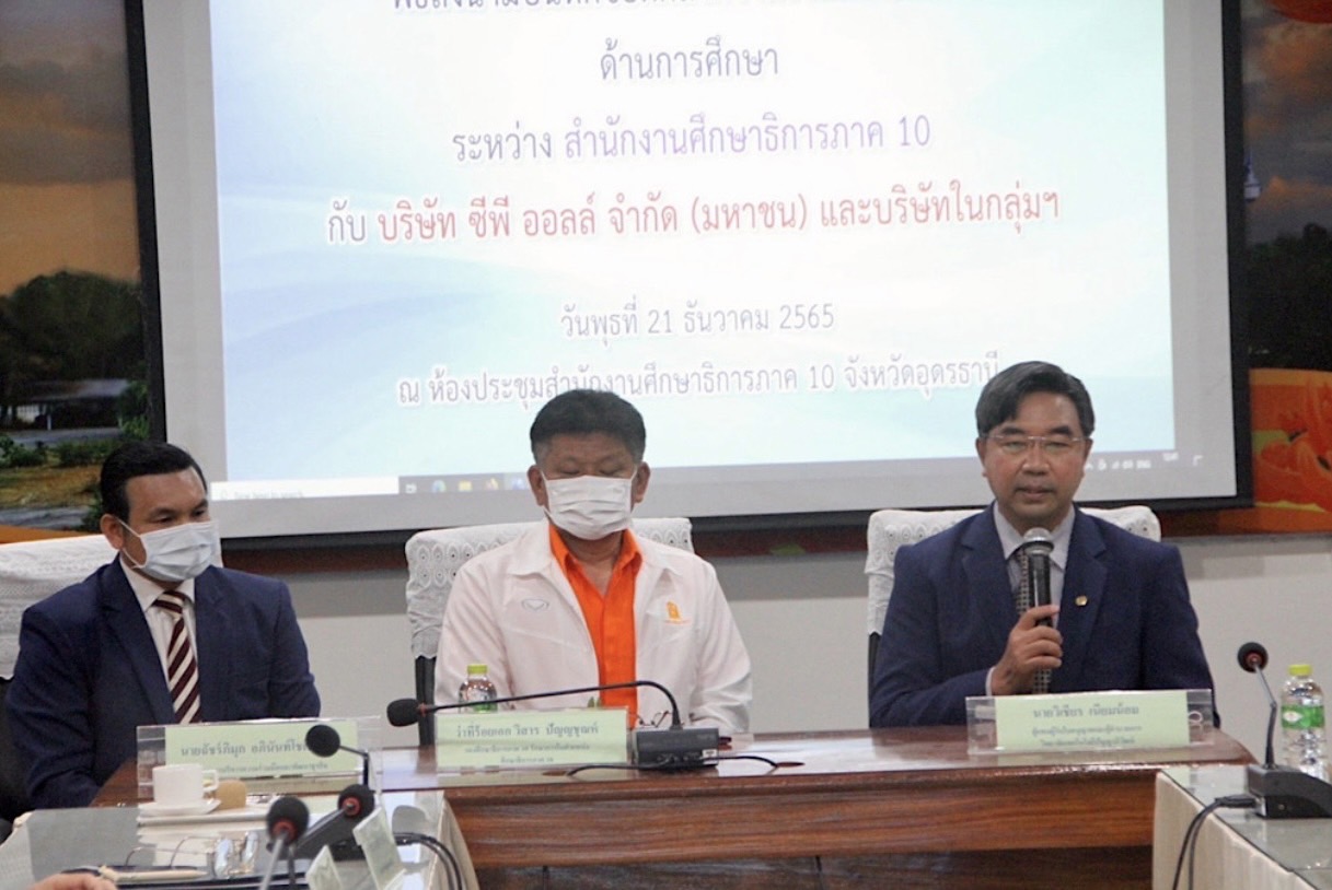 21 ธันวาคม 2565 บริษัท ซีพี ออลล์ จำกัด (มหาชน) วิทยาลัยเทคโนโลยีปัญญาภิวัฒน์ ร่วมกับสำนักงานศึกษาธิการภาค 10 อุดรธานี ลงนามบันทึกข้อตกลงความร่วมมือ (MOU) ด้านการศึกษา เพื่อมอบทุนการศึกษา รวมถึงการพัฒนาหลักสูตร , พัฒนาบุคลากร, การฝึกประสบการณ์วิชาชีพของนักเรียน นักศึกษา และการรับผู้สำเร็จการศึกษาเข้าทำงาน โดยมีคุณวิเชียร เนียมน้อม ผู้แทนผู้รับใบอนุญาตและผู้อำนวยการวิทยาลัยฯ ดร.ฉัชร์ภิมุก อภินันท์โชติสกุล ผู้อำนวยการการบริหารความร่วมมือและพัฒนาธุรกิจ ร่วมลงนามบันทึกข้อตกลงความร่วมมือ กับว่าที่ร้อยเอก วิสาร ปัญญชุณห์ รองศึกษาธิการภาค 10 รักษาการในตำแหน่งศึกษาธิการภาค 10 พร้อมผู้เข้าร่วมพิธีลงนามบันทึกข้อตกลงความร่วมมือ ระหว่างผู้บริหารสำนักงานศึกษาธิการภาค 10 กับบริษัท ซีพี ออลล์ จำกัด (มหาชน) และบริษัทในกลุ่มฯ อาทิ นายองอาจ ศรีปะโค ผู้บริหารงานกลุ่มบุคคล , คุณน้ำฝน อรรคฮาด ผู้อำนวยการกลุ่มยุทธศาสตร์การศึกษา , คุณสุวัทนา พลางวัน ผู้อำนวยการกลุ่มพัฒนาการศึกษา , คุณดอน รูปสม ผู้อำนวยการกลุ่มตรวจราชการติดตามและประเมินผล , คุณวินิตย์ สิมงาม ผู้อำนวยการกลุ่มอำนวยการ , คุณวัชรพงศ์ พิพัฒน์สุริยวงศ์ รองศึกษาธิการจังหวัดอุดรธานี , คุณภราดร วงศ์ศรีเผือก ผู้อำนวยการวิทยาลัยเทคโนโลยีรังสิโยภาส รองประธานคณะกรรมการอาชีวศึกษาจังหวัดอุดรธานี , คุณอัญชลี วัฒนาสกุลเกียรติ รองศึกษาธิการจังหวัดหนองคาย , คุณภัทราพร ฤทธิ์จอหอ นักวิชาการศึกษาชำนาญการพิเศษ ปฏิบัติหน้าที่ ผอ.กลุ่มพัฒนาการศึกษา เป็นต้น