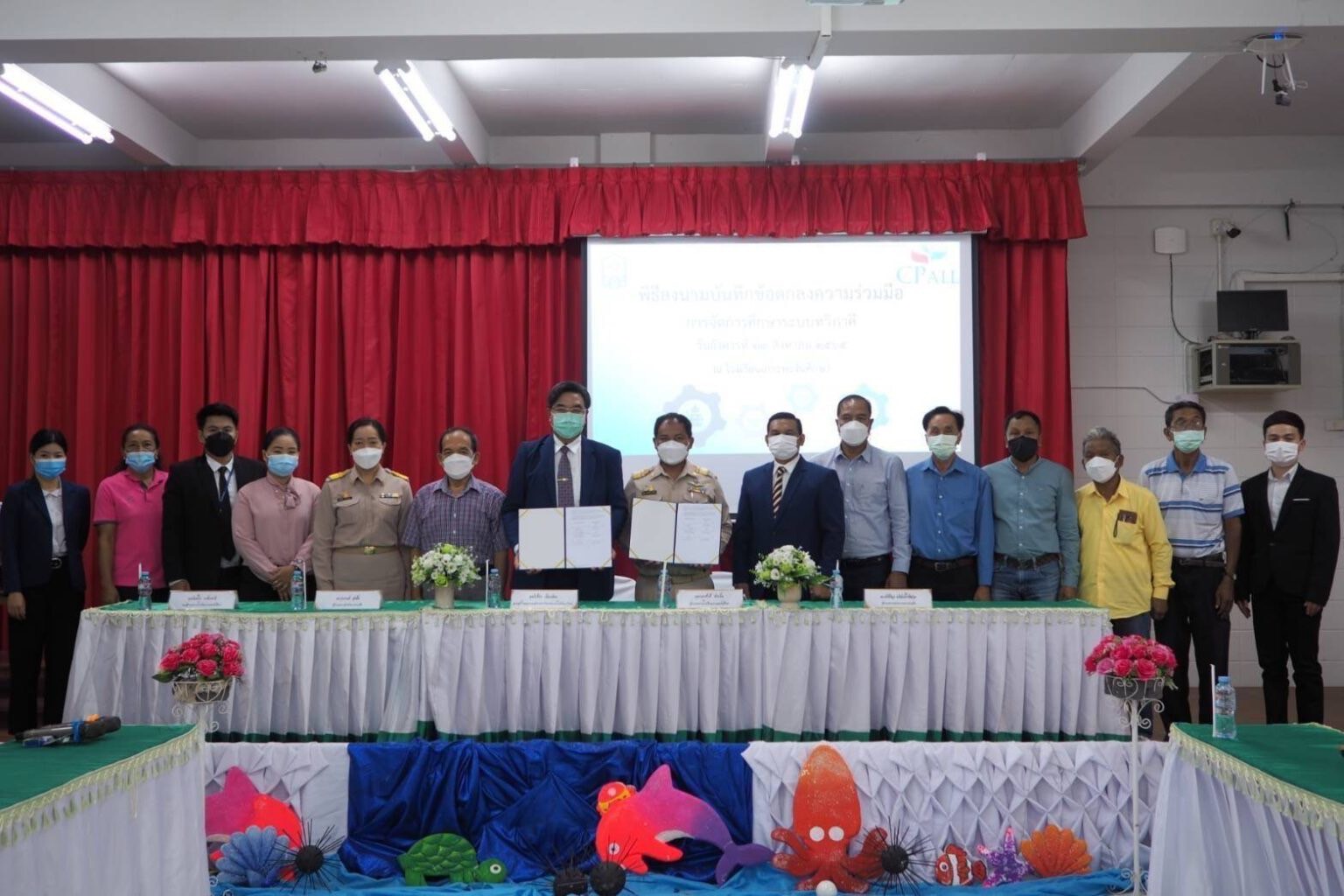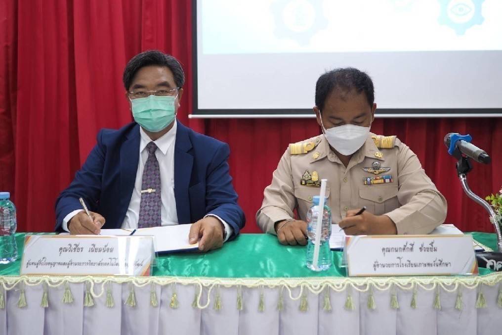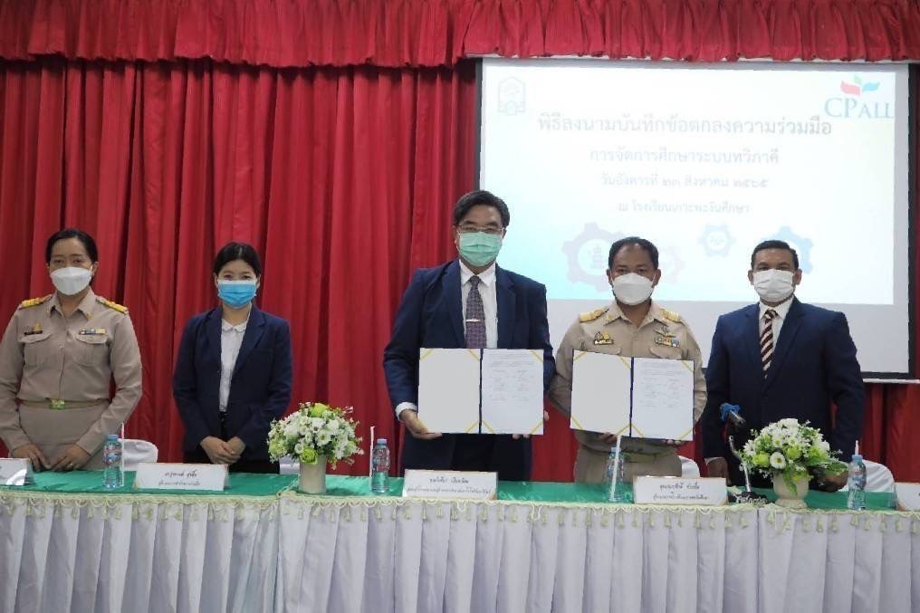 24 สิงหาคม 2565 วิทยาลัยเทคโนโลยีปัญญาภิวัฒน์ นำโดยคุณวิเชียร เนียมน้อม ผู้แทนผู้รับใบอนุญาตและผู้อำนวยการวิทยาลัยฯ และคุณกนกศักดิ์ ช่วยยิ้ม ผู้อำนวยการโรงเรียนเกาะพะงันศึกษา ร่วมกันเป็นประธานในพิธีลงนามบันทึกข้อตกลงความร่วมมือ (MOU) การจัดการศึกษาระบบทวิภาคี ระหว่างบริษัทซีพี ออลล์ จำกัด (มหาชน) กับโรงเรียนเกาะพะงันศึกษา โดยมี ดร.ฉัชร์ภิมุก อภินันท์โชติสกุล ผู้อำนวยการบริหารความร่วมมือ , ดร.รุ่งกานต์ สุขลิ้ม ผู้อำนวยการสำนักความร่วมมือ , คุณพิมพ์ใจ วงศ์วรชาติ รองผู้อำนวยการ ร.ร.เกาะพะงันศึกษา , คณะกรรมการสถานศึกษา , ครู , ผู้จัดการเขต และ HR ตัวแทนจากทีม OPT เกาะพะงันร่วมในพิธี ณ โรงเรียนเกาะพะงันศึกษา จ.สุราษฎร์ธานี เพื่อให้นักเรียนในพื้นที่เกาะพะงันได้รับโอกาสทางการศึกษาอย่างเท่าเทียมกับพื้นที่อื่น พร้อมสนับสนุนการพัฒนาทรัพยากรบุคคลให้มีคุณภาพ มีทักษะความรู้ ความชำนาญในการประกอบอาชีพ ลดปัญหาความยากจนและการว่างงานอย่างแท้จริง