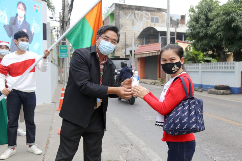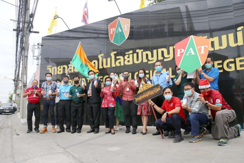วิทยาลัยเทคโนโลยีปัญญาภิวัฒน์ โดยคุณวิเชียร เนียมน้อม ผู้แทนผู้รับใบอนุญาตและผู้อำนวยการวิทยาลัยเทคโนโลยีปัญญาภิวัฒน์ พร้อมคณะผู้บริหาร ร่วมมอบเจลแอลกอฮอล์เพื่อสู้ภัยโควิด-19 ให้แก่ประชาชนชุมชนวัดบัวขวัญและชุมชนใกล้เคียงวิทยาลัยฯ เพื่อนำไปใช้ประโยชน์ตามมาตรการการป้องกันการติดเชื้อไวรัสโควิด-19