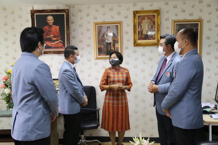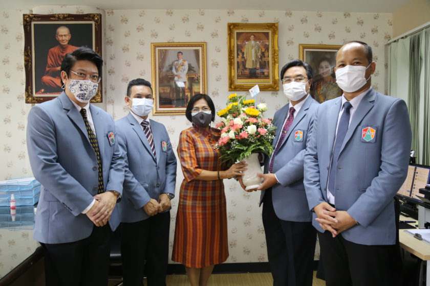 คุณวิเชียร เนียมน้อม ผู้แทนผู้รับใบอนุญาตและผู้อำนวยการวิทยาลัยเทคโนโลยีปัญญาภิวัฒน์ ดร.ฉัชร์ภิมุก อภินันท์โชติกุล ผู้อำนวยการการบริหารความร่วมมือ คุณวรเชษฐ์ ธรรมวงศ์ ผู้อำนวยการสำนักวิชาการ และคุณวัชระ เกษสำลี ผู้อำนวยการสำนักสื่อสารองค์กร เดินทางเข้ามอบแจกันดอกไม้แสดงความยินดีกับ ดร.ก้านทิพย์ ชาติวงศ์ ผู้อำนวยการสำนักบริหารการอาชีวศึกษาเอกชน ที่ได้รับการแต่งตั้งให้ดำรงตำแหน่งเพิ่มอีกหนึ่งตำแหน่งเป็น ผู้อำนวยการสำนักติดตามและประเมินผลการอาชีวศึกษา ที่กระทรวงศึกษาธิการ และหารือความคืบหน้าของหลักสูตรเทคนิควิทยาการนาฬิกาที่พร้อมจะเปิดสำหรับปีการศึกษา 2564 ในระดับประกาศนียบัตรชั้นสูง
