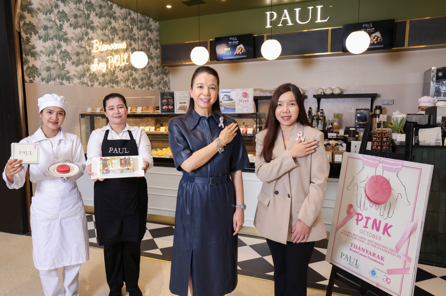 กรุงเทพฯ 7 ตุลาคม 2568 – เดือนตุลาคมของทุกปี ได้รับการยกให้เป็นเดือนแห่งการรณรงค์ต่อต้านโรคมะเร็งเต้านม (Breast Cancer Awareness Month) เพื่อสร้างการตระหนักรู้และป้องกันภัยเงียบที่คุกคามผู้หญิงทั่วโลก ในปีนี้ มูลนิธิถันยรักษ์ ในพระราชูปถัมภ์สมเด็จพระศรีนครินทราบรมราชชนนี โดย นางบุษดี เจียรวนนท์ กรรมการและเลขาธิการมูลนิธิฯ จับมือ PAUL Thailand โดย นางสาวอัจฉรา โสตถิพัฒนพงศ์ ประธานเจ้าหน้าที่บริหารหน่วยงาน กลุ่มฟู้ดเชน แอนด์ คอฟฟี่เฮาส์ ร่วมกันรังสรรค์ความหอมหวานจากขนมฝรั่งเศสแท้ หลอมรวมเข้ากับพลังแห่งการให้ได้อย่างงดงามและทรงคุณค่า ผ่านแคมเปญ “Pink October” ที่ดำเนินต่อเนื่องเป็นปีที่ 3 ซึ่งแคมเปญครั้งนี้ไม่เพียงเชิญชวนผู้หญิงไทยให้หันมาโอบกอดสุขภาพของตนเอง ด้วยการหมั่นตรวจเต้านมเป็นประจำและเข้ารับการตรวจคัดกรองทุกปี ภายใต้แนวคิดที่ว่า “การป้องกันที่ดีที่สุด คือการค้นพบให้เร็วที่สุด” แต่ยังเปิดโอกาสให้ทุกคนได้ร่วมสร้างความหมายพิเศษ ผ่านการเลือกซื้อ Grand Macaron สุดพรีเมียม กรอบนอกนุ่มใน รสชาตินุ่มลึก มีให้เลือก 5 รสชาติ ได้แก่ วานิลลา, ราสเบอร์รี, ช็อกโกแลต, พิตาชิโอ และกาแฟ หรือจะเลือกสะท้อนตัวตนในแบบของคุณผ่าน Mini Macarons Boxed 6 รสชาติ ได้แก่ มะพร้าว, ราสเบอร์รี, ช็อกโกแลต, พิตาชิโอ, มะนาว และคาราเมล ทุกการซื้อ 1 ชิ้น = การบริจาค 30 บาท สมทบทุนมูลนิธิถันยรักษ์ฯ เพื่อนำไปสนับสนุนการจัดหาอุปกรณ์ทางการแพทย์ และช่วยขยายโอกาสให้ผู้หญิงไทยที่ด้อยโอกาสได้เข้าถึงการตรวจคัดกรองมะเร็งเต้านมเบื้องต้น ณ ศูนย์ถันยรักษ์ โรงพยาบาลศิริราช รายละเอียดเพิ่มเติมโทร. 0-2411-5657-9