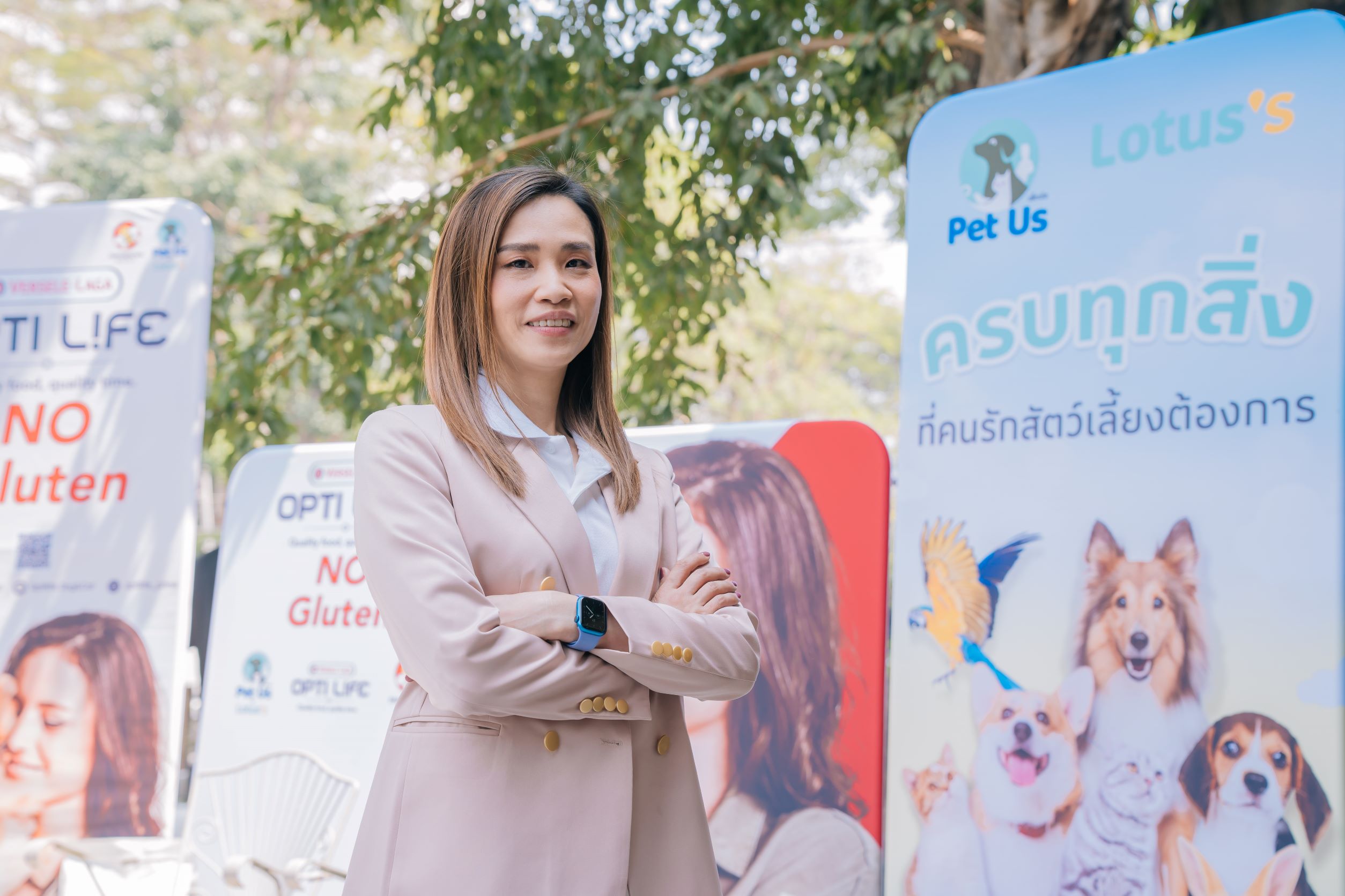 คุณโชติมา ลาภเวโรจน์ ผู้ช่วยผู้อำนวยการแผนกสินค้าอุปโภค โลตัส และผู้อำนวยการร้านเพ็ทอัส กล่าวว่า “ความมุ่งมั่นของโลตัส คือการช่วยให้ลูกค้าของเรา ‘รู้สึกดีดี ทุกวัน ที่โลตัส’ ด้วยการส่งมอบสินค้าและบริการคุณภาพสูงในราคาที่เอื้อมถึง และตอบโจทย์ความต้องการของลูกค้าสมัยใหม่ จากการศึกษาพฤติกรรมและเทรนด์ต่าง ๆ เราทราบกันดีว่าปัจจุบันคนหันมาเลี้ยงสัตว์เลี้ยงกันเพิ่มมากขึ้น และสัตว์เลี้ยงเป็นหนึ่งในสมาชิกของครอบครัวที่ต้องได้รับการดูแลอย่างดี ด้วยเหตุนี้ โลตัส จึงได้เริ่มธุรกิจ Pet Us ขึ้น เพื่อให้เป็นเดสทิเนชั่นสำหรับคนรักสัตว์เลี้ยงครบวงจร ทั้งสินค้าอาหารและอุปกรณ์สัตว์เลี้ยง บริการอาบน้ำตัดขน สัตวแพทย์ผู้เชี่ยวชาญ สะดวก ครบ จบในที่เดียว โดยมีสินค้าหลากหลายแบรนด์ดัง ครอบคลุมทุกระดับราคา สำหรับสัตว์เลี้ยงหลายประเภท ทั้งน้องหมา น้องแมว นก หนูแฮมสเตอร์ กระต่าย ปลา โดย Pet Us มุ่งมั่นที่จะยกระดับสินค้าและบริการที่ตอบโจทย์ทุกความต้องการของคนรักสัตว์เลี้ยง จึงเป็นที่มาความร่วมมือในครั้งนี้ที่ Opti Life เปิดตัวแบรนด์น้องใหม่ อาหารสุนัขสูตรไม่มีกลูเตน เพื่อสุขภาพที่ดีของน้องหมาทุกสายพันธุ์และทุกช่วงอายุ พร้อมสูตรที่ตอบความต้องการพิเศษสำหรับสุนัขแพ้ง่ายและสุนัขทำหมันหรือต้องการควบคุมน้ำหนัก เพื่อตอบโจทย์คนรักสัตว์เลี้ยงสายสุขภาพ เพิ่มทางเลือกให้ลูกค้า เติมเต็มการเป็นเดสทิเนชั่นสำหรับคนรักสัตว์เลี้ยงที่มีสินค้าคุณภาพสูงและบริการที่ครบครัน เหมาะกับทุกความต้องการของคนรักสัตว์เลี้ยง สำหรับผลิตภัณฑ์แบรนด์ Opti Life จะวางจำหน่ายที่ร้าน Pet Us เป็นที่แรก พร้อมโปรโมชั่นฉลองการเปิดตัวสินค้าใหม่ และยังสามารถสะสมแต้มสมาชิกมายโลตัส เพื่อรับโปรโมชั่นและสิทธิพิเศษอื่น ๆ เพิ่มเติมได้อีกด้วย
