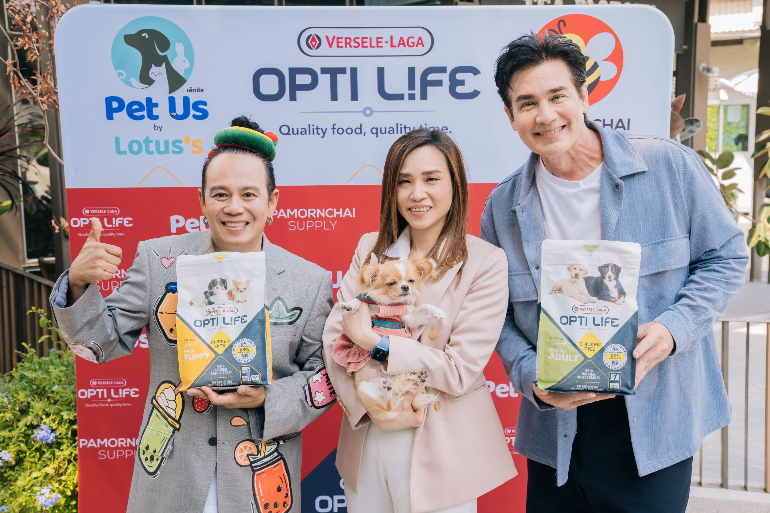Pet Us (เพ็ทอัส) ธุรกิจเพื่อสัตว์เลี้ยงครบวงจรโดยโลตัส จับมือพันธมิตร คุณวิลลี่ คุณหอย และภมรชัย ซัพพลาย เปิดตัว Opti Life ผลิตภัณฑ์อาหารสุนัขแบรนด์ดังจากประเทศเบลเยียม ตอบโจทย์ทุกความต้องการของสุนัขทุกสายพันธุ์และทุกช่วงอายุ สูตรไม่มีกลูเตน มีโปรตีนชนิดเดียวในแต่ละสูตร ด้วยวัตถุดิบธรรมชาติที่คัดสรรจากแหล่งปลอดมลพิษส่งตรงจากเบลเยียม โดยร่วมลงนามความร่วมมือวางจำหน่ายสินค้าในร้าน Pet Us เป็นที่แรก เติมเต็มการเป็นเดสทิเนชั่นของคนรักสัตว์เลี้ยงด้วยสินค้าคุณภาพสูงในราคาที่เอื้อมถึง เป็นคลับของคนรักสัตว์เลี้ยงที่มีครบทั้งอาหารและอุปกรณ์สัตว์เลี้ยง บริการอาบน้ำตัดขน สัตวแพทย์ผู้เชี่ยวชาญ สะดวก ครบ จบในที่เดียว