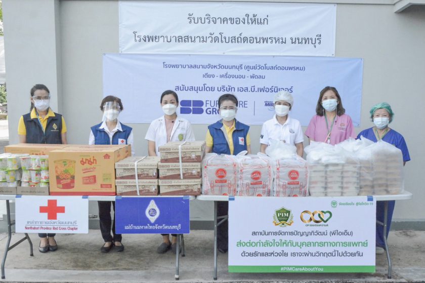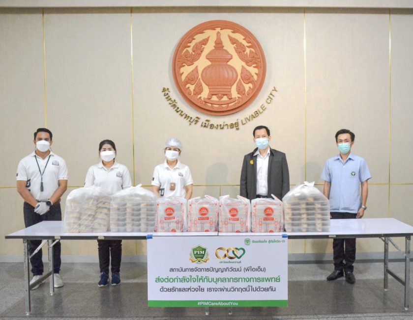 สถาบันการจัดการปัญญาภิวัฒน์ (พีไอเอ็ม) ร่วมกับ สำนักงานเหล่ากาชาด นำโดย แพทย์หญิงสุวรรณา ไชยชุมศักดิ์ นายกเหล่ากาชาดจังหวัดนนทบุรี และคุณจันทิมา สุรรัตน์ ผู้อำนวยการสำนักกิจการนักศึกษา พีไอเอ็ม พร้อมคณะทำงาน ร่วมร้อยเรียงความดี จัดกิจกรรม PIM ส่งรัก เติมสุข สู่ชุมชน ตอน PIM ส่งกำลังใจ สู้ภัยโควิด-19 สานต่อความตั้งใจ “โครงการซีพี ร้อยเรียงใจ สู้ภัยโควิด-19” สนับสนุนอาหารและข้าวกล่องพร้อมทานให้กับผู้แทนรับมอบและบุคลากรทางการแพทย์ เมื่อวันที่ 27 กรกฎาคม 2564 ดังนี้