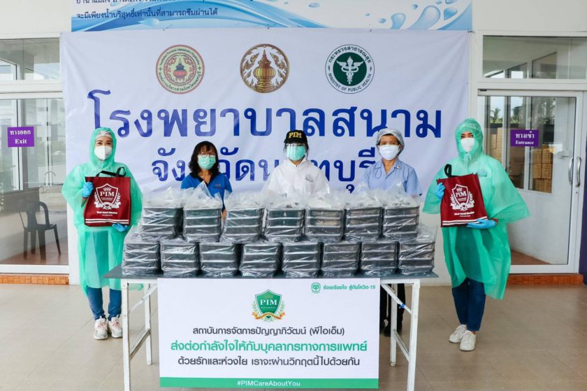 สถาบันการจัดการปัญญาภิวัฒน์ (พีไอเอ็ม) ร่วมเป็นอีกหนึ่งพลัง สู้ภัยโควิด-19 จัดกิจกรรม“ส่งต่อกำลังใจให้กับบุคลากรทางการแพทย์” ภายใต้ “โครงการซีพี ร้อยเรียงใจ สู้ภัยโควิด-19” สนับสนุนอาหารกล่องพร้อมทานมอบให้กับบุคลากรทางการแพทย์ โรงพยาบาลพระนั่งเกล้า, โรงพยาบาลสนามโรงเรียนนนทบุรีวิทยาลัย จังหวัดนนทบุรี นำโดย คุณจันทิมา สุรรัตน์ ผู้อำนวยการสำนักกิจการนักศึกษา ในนามตัวแทนสถาบันการจัดการปัญญาภิวัฒน์ พร้อมคณะทำงาน ร่วมกับร้าน Chef’s Kitchen ประกอบอาหารที่สดใหม่ปลอดภัย ปรุงด้วยความใส่ใจ มั่นใจได้ในสุขลักษณะจากครัวของร้าน ทานได้อย่างสะดวกเพื่อเป็นอาหารเสริมพลัง เติมประโยชน์ต่อสุขภาพ