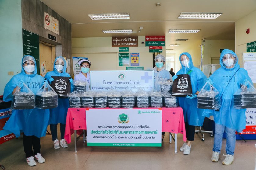 สถาบันการจัดการปัญญาภิวัฒน์ (พีไอเอ็ม) เดินหน้า จัดกิจกรรม “ส่งต่อกำลังใจให้กับบุคลากรทางการแพทย์” ภายใต้ “โครงการซีพี ร้อยเรียงใจ สู้ภัยโควิด-19” สนับสนุนอาหารกล่องพร้อมทานมอบให้กับบุคลากรทางการแพทย์ โรงพยาบาลบางใหญ่ โรงพยาบาลบางบัวทอง และศูนย์การแพทย์ปัญญานันทภิกขุ ชลประทาน จังหวัดนนทบุรี นำโดย คุณจันทิมา สุรรัตน์ ผู้อำนวยการสำนักกิจการนักศึกษา ในนามตัวแทนสถาบันการจัดการปัญญาภิวัฒน์ พร้อมคณะทำงาน ร่วมกับร้าน Chef’s Kitchen ประกอบอาหารที่สดใหม่ปลอดภัย ปรุงด้วยความใส่ใจ มั่นใจได้ในสุขลักษณะจากครัวของร้าน ทานได้อย่างสะดวกเพื่อเป็นอาหารเสริมพลัง เติมประโยชน์ต่อสุขภาพ