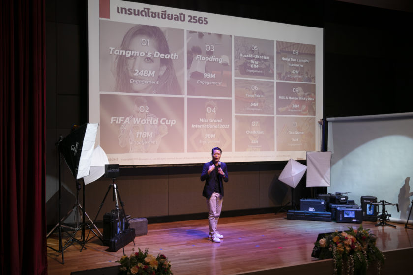 นอกจากนี้ ภายในงานยังได้เปิดเวที TED Talk แบ่งปันความรู้แนวโน้มเทรนด์เทคโนโลยีการสื่อสาร ในหัวข้อ “Communication Trend” โดย คุณกล้า ตั้งสุวรรณ ประธานเจ้าหน้าที่บริหาร บริษัท ไวซ์ไซท์ (ประเทศไทย) จำกัด ผู้ให้บริการวิเคราะห์ข้อมูล Social Media อันดับหนึ่งของประเทศไทย โดยได้นำเสนอข้อมูลประเด็นสำคัญ ๆ ไม่ว่าจะเป็นการเปลี่ยนแปลงของภูมิทัศน์สื่อ เทรนด์การเสพสื่อ เทรนด์การตลาด จำนวนผู้ใช้งานของแพลตฟอร์มโซเชียลต่าง ๆ อัพเดทพฤติกรรมที่เปลี่ยนแปลงไปของคนไทยในแต่ละเจนเนอเรชั่น พฤติกรรมและวิถีชีวิตยุคใหม่หลังวิกฤตโควิด-19 พร้อมทั้งจับตาเทรนด์การสร้างแบรนด์และองค์กรเพื่อความยั่งยืนในโลกที่เปลี่ยนแปลงไป ซึ่งเป็นหัวใจสำคัญที่นักสื่อสาร นักการตลาด ต้องรู้ลึกรู้จริง เข้าใจและเข้าถึง