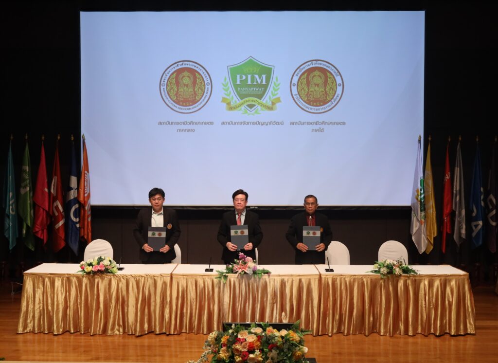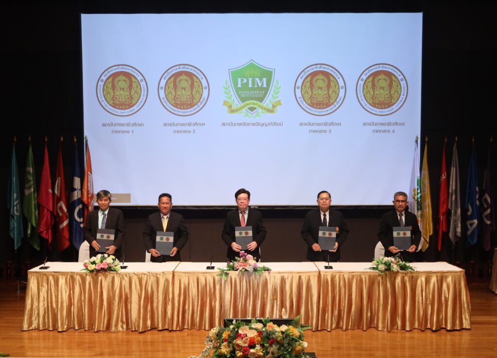 สถาบันการจัดการปัญญาภิวัฒน์ (พีไอเอ็ม) ทำบันทึกข้อตกลงความร่วมมือทางวิชาการกับ สถาบันการอาชีวศึกษา 20 สถาบันทั่วประเทศ โดยได้รับเกียรติจาก รองศาสตราจารย์ ดร.สมภพ มานะรังสรรค์ อธิการบดี สถาบันการจัดการปัญญาภิวัฒน์ และ ผู้อำนวยการสถาบันการอาชีวศึกษาทั้ง 20 สถาบัน เป็นผู้ลงนามสนับสนุนการพัฒนาผู้เรียนระดับอาชีวศึกษาให้มีความรู้ ความเชี่ยวชาญ ทั้งวิชาการและภาคปฏิบัติ และปรับปรุงหลักสูตรการจัดการเรียนการสอนที่เกิดประโยชน์ รวมถึงสนับสนุนทุนการศึกษาในระดับปริญญาตรี โดยแนวทางความร่วมมือมีเจตนารมณ์ขับเคลื่อนศักยภาพของผู้เรียนระดับอาชีวศึกษาให้มีสมรรถนะสูง ผ่านการแลกเปลี่ยนความรู้และประสบการณ์ของทุกฝ่าย สร้างความเข้มแข็งทางวิชาการ และส่งเสริมทักษะการลงมือทำอย่างมืออาชีพที่สอดคล้องกับรูปแบบ Work-based Education ของพีไอเอ็ม เพื่อสร้างทรัพยากรบุคคลได้สอดคล้องกับความต้องการของสถานประกอบการ ซึ่งเป็นกำลังสำคัญในการเพิ่มขีดความสามารถของประเทศ เมื่อวันพุธที่ 22 มีนาคม 2566 ณ ห้อง Auditorium ชั้น 16 อาคาร CP ALL Academy สถาบันการจัดการปัญญาภิวัฒน์ ถ.แจ้งวัฒนะ