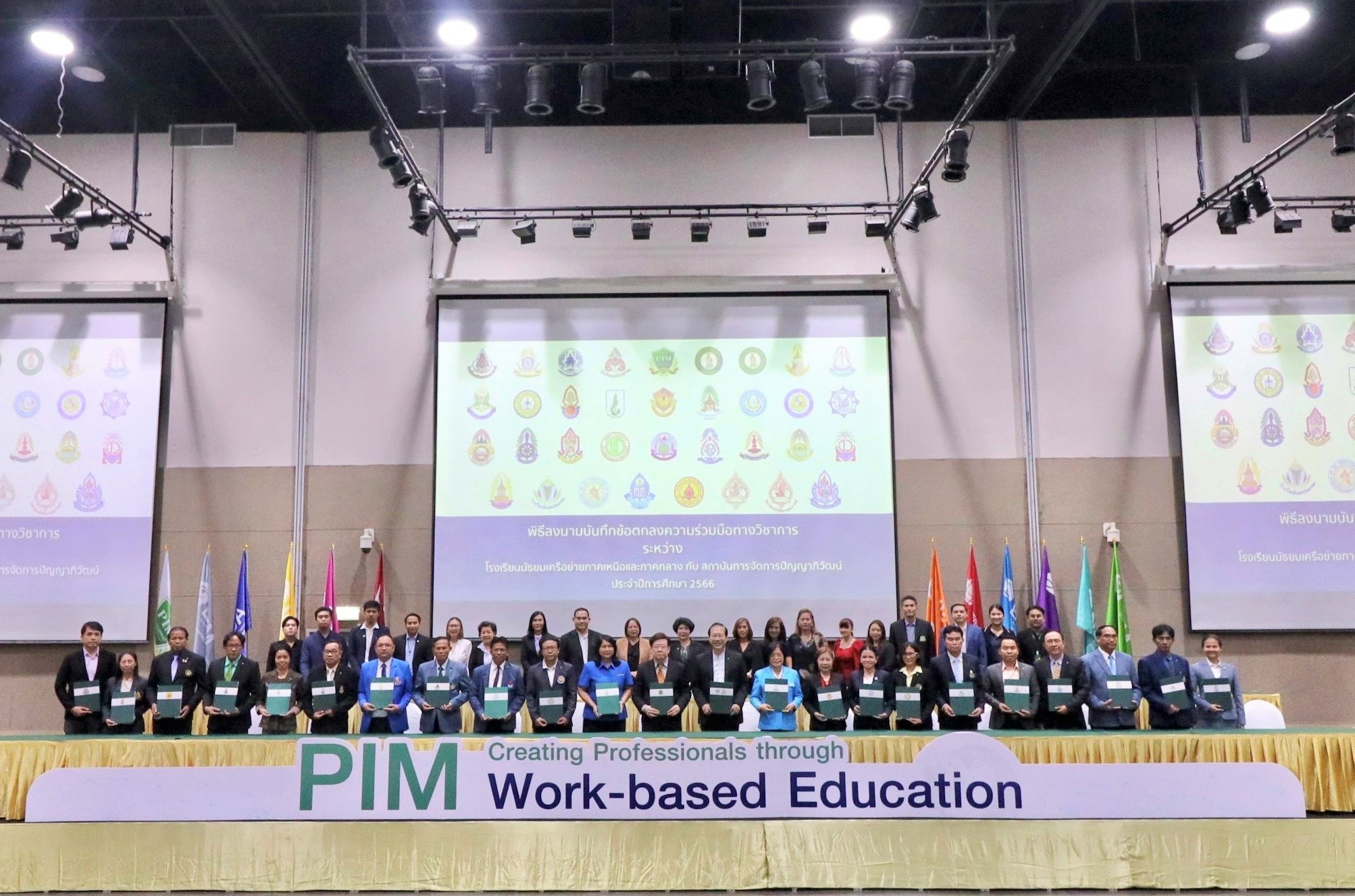 สถาบันการจัดการปัญญาภิวัฒน์ (พีไอเอ็ม) ลงนามบันทึกข้อตกลงความร่วมมือ (MOU) กับโรงเรียนมัธยมศึกษาเครือข่ายทั่วประเทศ ภายใต้ “โครงการห้องเรียนพันธมิตร” ซึ่งจัดต่อเนื่องเป็นปีที่ 5 เพื่อส่งเสริมโอกาสทางการศึกษาแก่นักเรียนมัธยมปลาย สนับสนุนการถ่ายทอดความรู้ ทักษะด้านวิชาการ การศึกษาดูงาน การแนะแนวอาชีพ การสร้างแรงบันดาลใจการเลือกศึกษาต่อ และแนวทางการประกอบอาชีพในอนาคต โดยมี รองศาสตราจารย์ ดร.สมภพ มานะรังสรรค์ อธิการบดี สถาบันการจัดการปัญญาภิวัฒน์ เป็นประธานลงนามร่วมกับ ผู้อำนวยการและผู้แทนโรงเรียนมัธยมศึกษาเครือข่ายจากภูมิภาคต่างๆ รวม 109 โรงเรียน เมื่อวันที่ 9-10 สิงหาคม 2566 โดยเป็นรอบของภูมิภาคตะวันออกเฉียงเหนือ ภาคใต้ ภาคกลาง และภาคเหนือ ภายในงานได้รับเกียรติจากผู้บริหารระดับสูง คณบดี คณาจารย์ พีไอเอ็ม และบุคลากรทางการศึกษาจากโรงเรียนมัธยมศึกษาเครือข่ายร่วมเป็นสักขีพยานและร่วมยินดี ณ อาคารหอประชุมปัญญาภิวัฒน์ สถาบันการจัดการปัญญาภิวัฒน์ ถนนแจ้งวัฒนะ