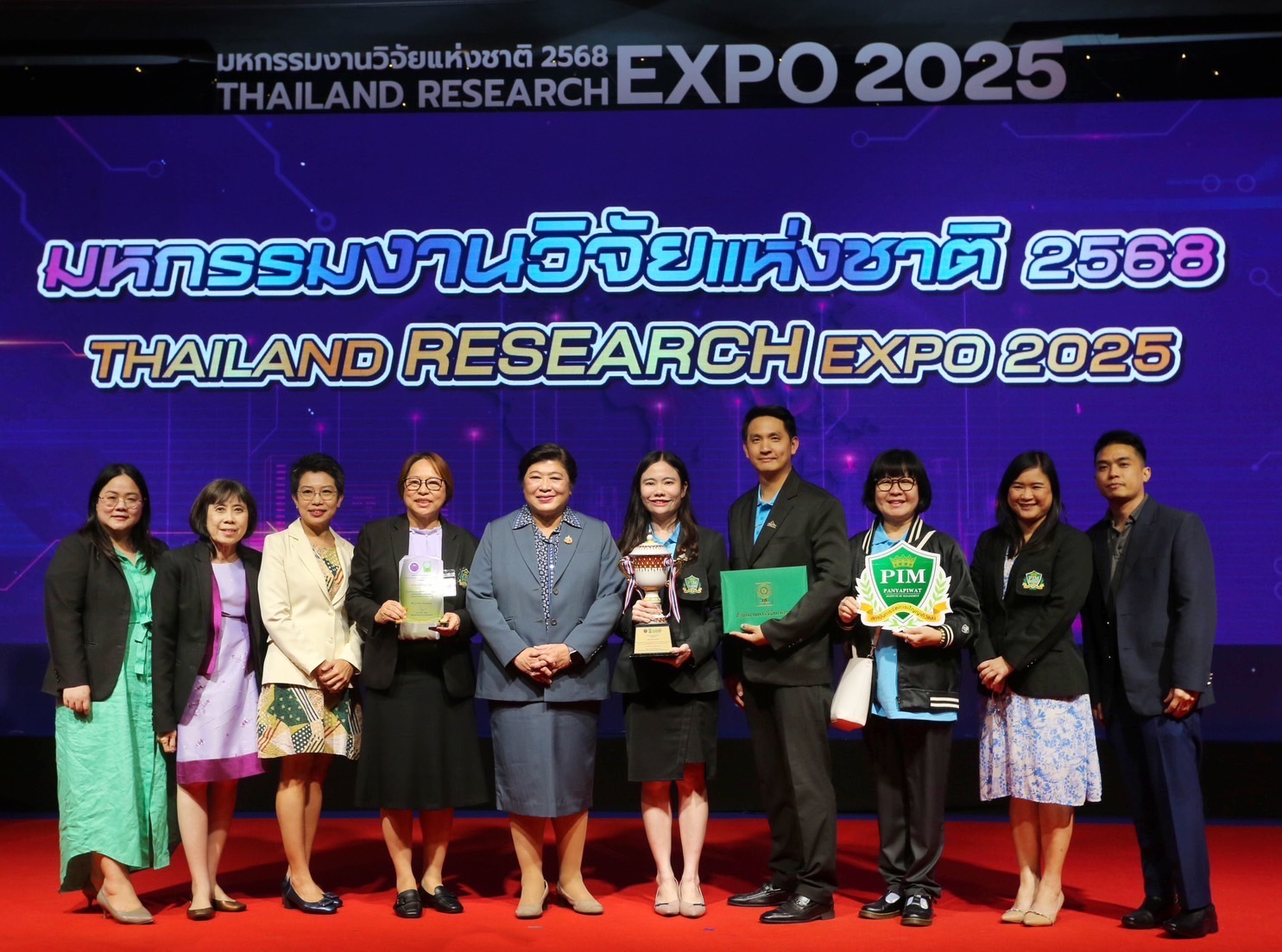 รองศาสตราจารย์ ดร.สมภพ มานะรังสรรค์ อธิการบดี สถาบันการจัดการปัญญาภิวัฒน์ (พีไอเอ็ม) และ อาจารย์พรวิทย์ พัชรินทร์ตนะกุล รองอธิการบดีอาวุโส สายวิชาการ พร้อมด้วยคณะผู้บริหาร พีไอเอ็ม ร่วมแสดงความยินดี ชื่นชมและขอบคุณในความทุ่มเทแก่นักวิจัยและบุคลากรพีไอเอ็ม ที่สร้างสรรค์งานวิจัยคุณภาพอย่างต่อเนื่อง คว้า GOLD AWARD Thailand Research Expo 2025 Award รางวัลแห่งเกียรติยศ ขับเคลื่อนงานวิจัยสู่การใช้ประโยชน์ได้จริงในระดับประเทศ ซึ่งพีไอเอ็มมุ่งส่งเสริมคณาจารย์ผู้เชี่ยวชาญให้ได้แสดงศักยภาพอย่างเต็มที่ ผลักดันนักศึกษาสู่การเป็นนวัตกรไปพร้อมกัน โดยเชื่อมโยงมิติทางวิชาการ องค์ความรู้ คิดค้นและการจัดการนวัตกรรม ผ่านระบบการเรียนรู้แบบ Work-based Education ที่ผสานการเรียนรู้ การวิจัย และการพัฒนานวัตกรรมเข้ากับการปฏิบัติงานจริง (Researching and Innovation) สามารถต่อยอดกระบวนการหรือพัฒนาเป็นผลิตภัณฑ์เพื่อการอุปโภคบริโภคอย่างเป็นรูปธรรม สู่การเป็นธุรกิจในเชิงพาณิชย์อย่างยั่งยืน เพื่อสอดคล้องกับนโยบาย สร้างประโยชน์สู่สังคม ชุมชน อุตสาหกรรม และประเทศชาติ พร้อมร่วมเสริมพลังประชาคมวิจัย วงการวิชาการในระดับสากลต่อไป โดยทีมนักวิจัยประกอบด้วย