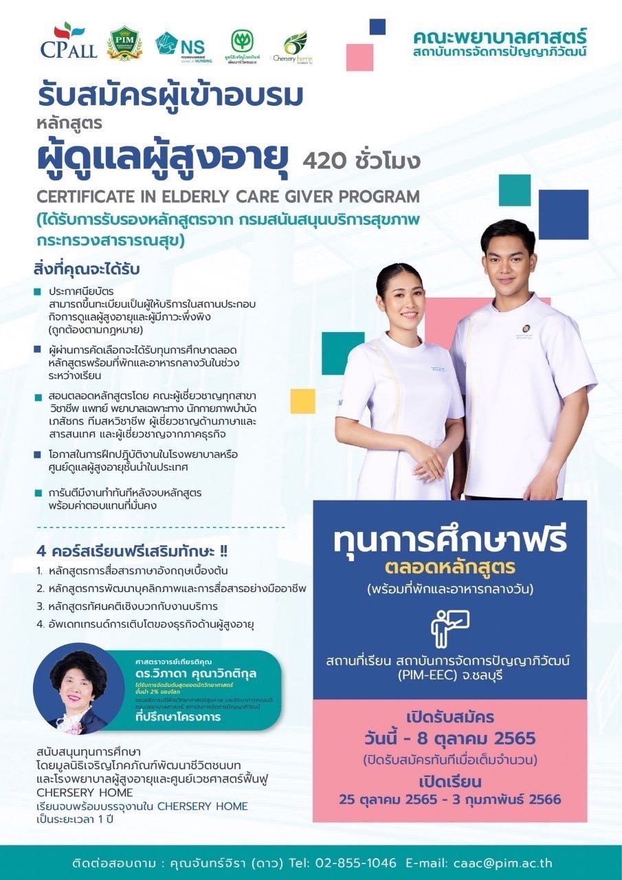 โอกาสพิเศษ แจกจนจบ ..สนับสนุนทุนเรียน บริบาล ฟรี ! คณะพยาบาลศาสตร์ สถาบันการจัดการปัญญาภิวัฒน์ ร่วมกับ มูลนิธิเจริญโภคภัณฑ์พัฒนาชีวิตชนบทและโรงพยาบาลผู้สูงอายุและศูนย์เวชศาสตร์ฟื้นฟู CHERSERY HOME