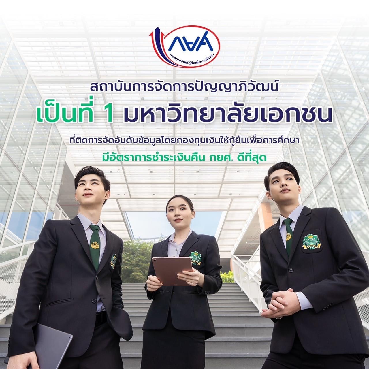 สถาบันการจัดการปัญญาภิวัฒน์ (พีไอเอ็ม) คว้าที่ 1 มหาวิทยาลัยเอกชนแห่งเดียว ที่ติดการจัดอันดับข้อมูลสถานศึกษาที่มีอัตราการชำระเงินคืน กยศ. ดีที่สุด 25 อันดับแรกของประเทศ โดยการจัดอันดับของกองทุนเงินให้กู้ยืมเพื่อการศึกษา (กยศ.) ปีงบประมาณ 2565 นับเป็นอีกหนึ่งความภาคภูมิใจของการมีส่วนร่วมทั้งภาครัฐและเอกชน สถาบันฯ ในฐานะของสถาบันอุดมศึกษาที่มีการส่งมอบโอกาสทางการศึกษา ด้วยทุนการศึกษาสำหรับเยาวชนอย่างต่อเนื่องเพื่อสร้างบุคคลคุณภาพ รวมถึงการส่งเสริมให้นักศึกษาได้มีส่วนร่วมในการทำประโยชน์เพื่อส่วนรวมจากกิจกรรมต่างๆ สม่ำเสมอ และ กยศ. เป็นกองทุนจากกลไกภาครัฐที่ช่วยเติมเต็มให้เยาวชนได้รับโอกาสทางการศึกษาอย่างทั่วถึง สร้างอนาคตที่ดีอย่างเท่าเทียม เพื่อการพัฒนาทรัพยากรมนุษย์ของชาติโดยรวม