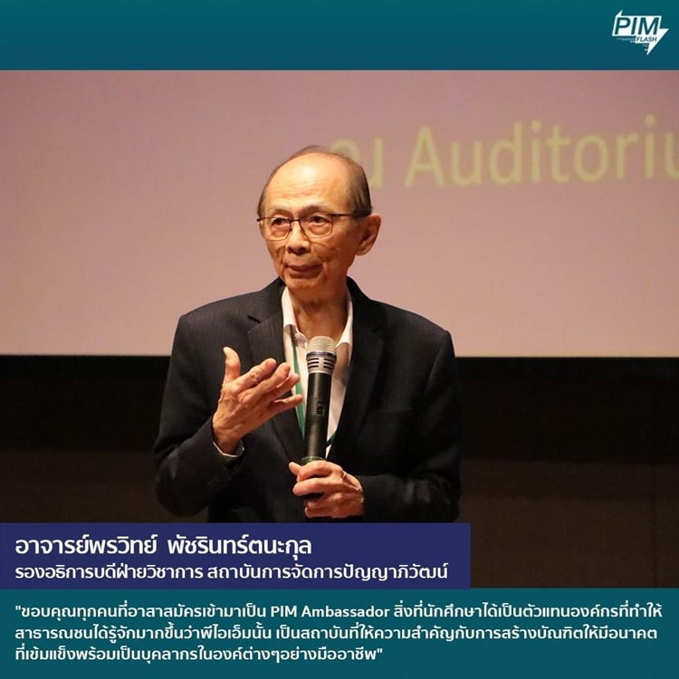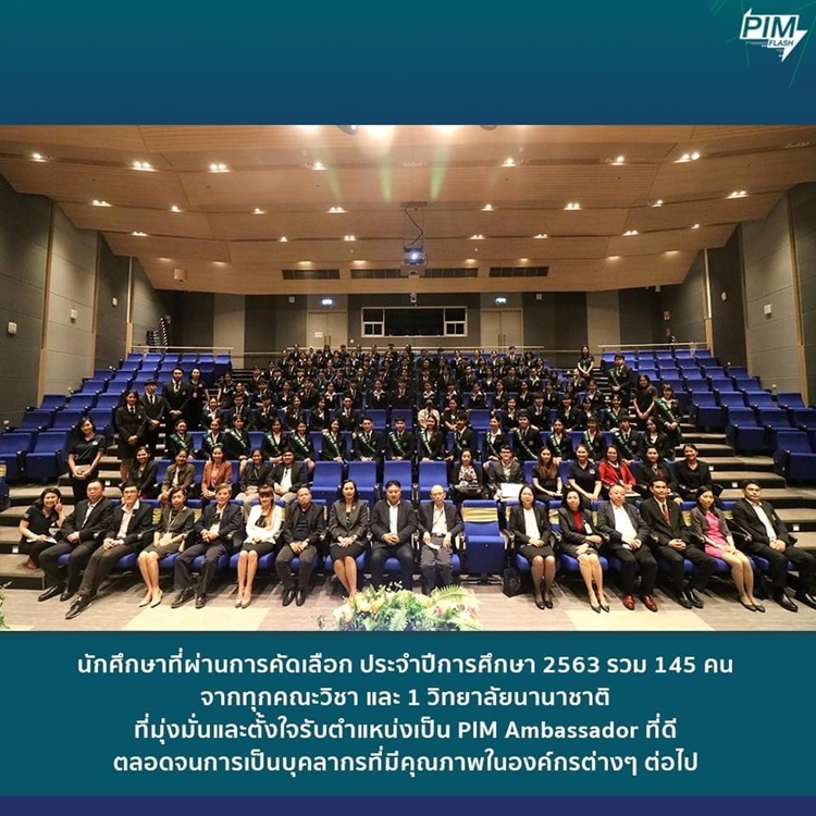ที่มุ่งมั่นและตั้งใจรับตำแหน่งเป็น PIM Ambassador ที่ดี ตลอดจนการเป็นบุคลากรที่มีคุณภาพในองค์กรต่างๆ ต่อไปพร้อมทั้งสนับสนุนภาพลักษณ์ของสถาบัน