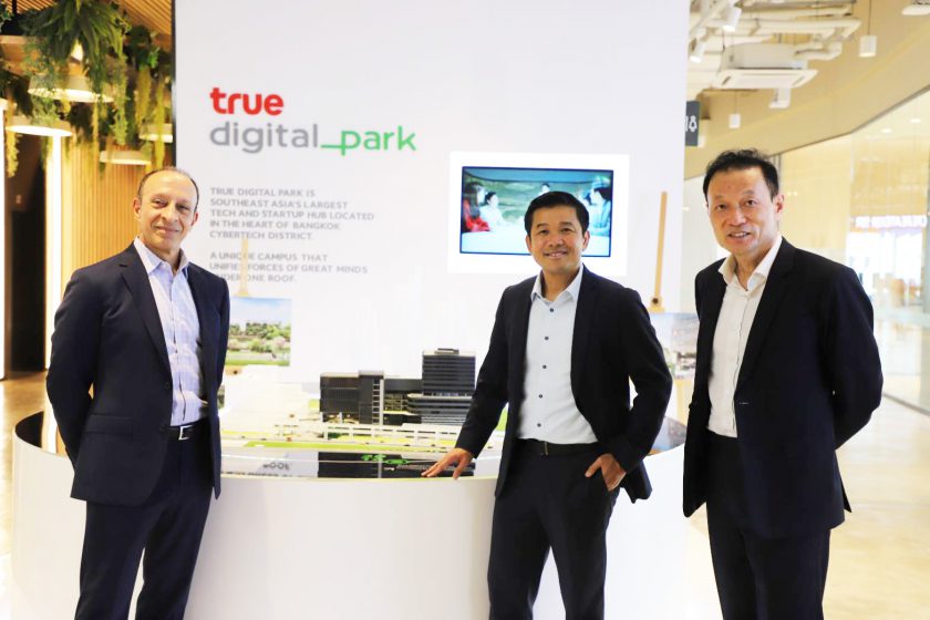 จากซ้ายไปขวา: ธันยธร ทองวรานันท์ ผู้จัดการโปรแกรมสมาร์ทซิตี้ ภูมิภาคเอเชียแปซิฟิก Plug and Play, ดร.จอหน์ เจียง ประธานเจ้าหน้าที่บริหารฝ่ายเทคโนโลยี การวิจัยและพัฒนา เครือเจริญโภคภัณฑ์, Shawn Dehpanah รองกรรมการผู้จัดการภูมิภาคเอเชียแปฟิก  Plug and Play, ฐนสรณ์ ใจดี กรรมการผู้จัดการใหญ่ ทรู ดิจิทัล พาร์ค, รัชนี ทีปประสาน ผู้อำนวยการฝ่ายวิจัยและพัฒนา และนวัตกรรม และ วสันต์ หิรัญสถิตพร จากเครือเจริญโภคภัณฑ์