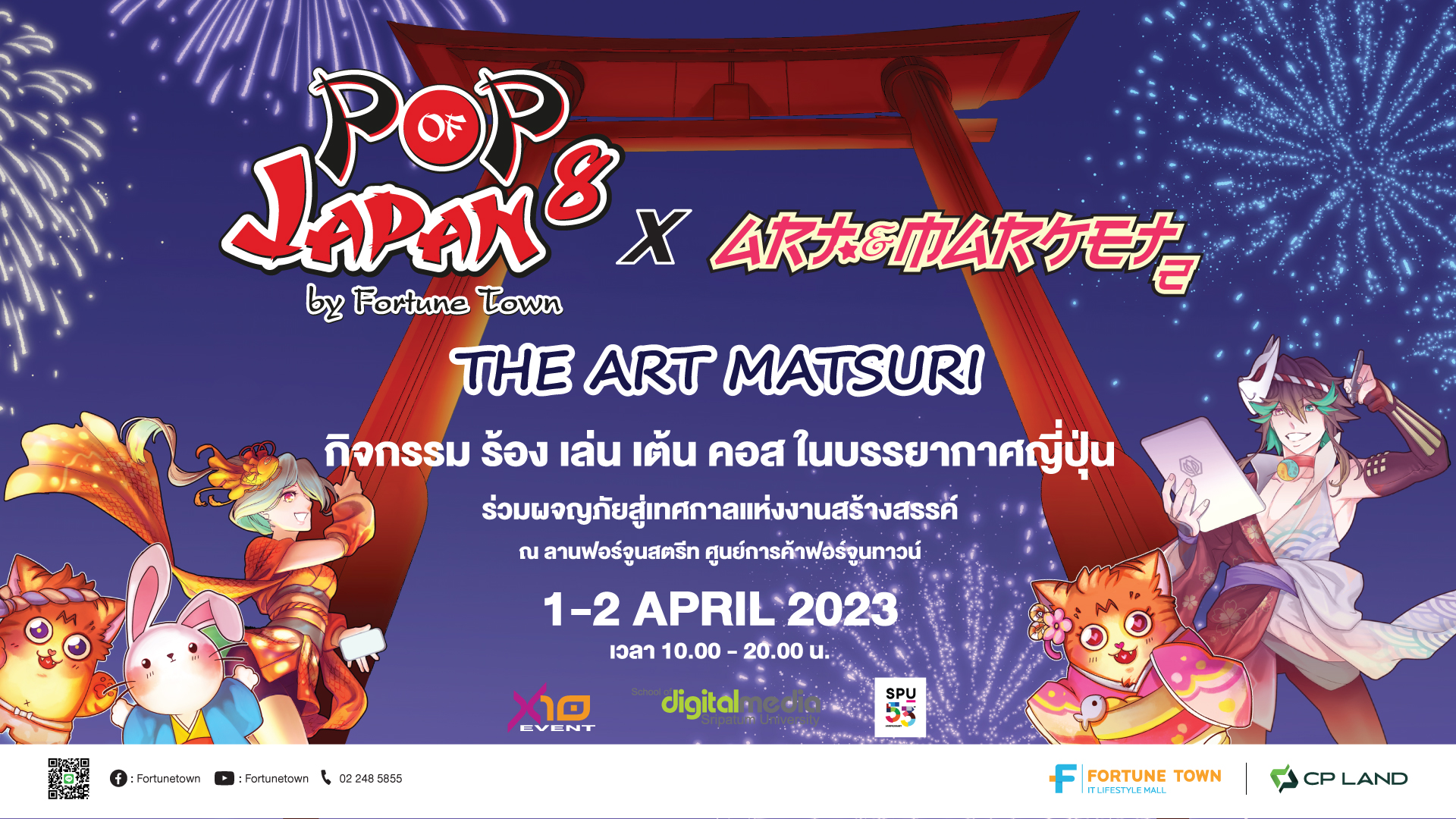 28 มีนาคม 2566, กรุงเทพฯ – ฟอร์จูนทาวน์ (Fortune Town) ศูนย์รวมไอทีและไลฟ์สไตล์ชั้นนำย่าน รัชดา-พระราม 9 ภายใต้บริษัท ซี.พี. แลนด์ จำกัด (มหาชน) หรือ CP LAND ร่วมกับ มหาวิทยาลัยศรีปทุม จัดกิจกรรมเทศกาลญี่ปุ่นที่ยิ่งใหญ่ต้อนรับซัมเมอร์ ในงาน POP OF JAPAN#8 X ART & MARKET SPU : The Art Matsuri ชวนเหล่าโอตะมาร้อง เล่น เต้น คอส ส่งเสียงเชียร์กับการประกวด Anisong Contest & Cosplay Contest สัมผัสบรรยากาศสไตล์ญี่ปุ่น พร้อมการออกร้านจำหน่ายสินค้า ผลงานการสร้างสรรค์ จากนักศึกษา คณะดิจิทัลมีเดีย มหาวิทยาลัยศรีปทุม ในงาน POP OF JAPAN#8 X ART & MARKET SPU : The Art Matsuri งานจัดขึ้นตั้งแต่วันที่ 1-2 เมษายน 2566 ลานฟอร์จูนสตรีท ฟอร์จูนทาวน์ รัชดา-พระราม9