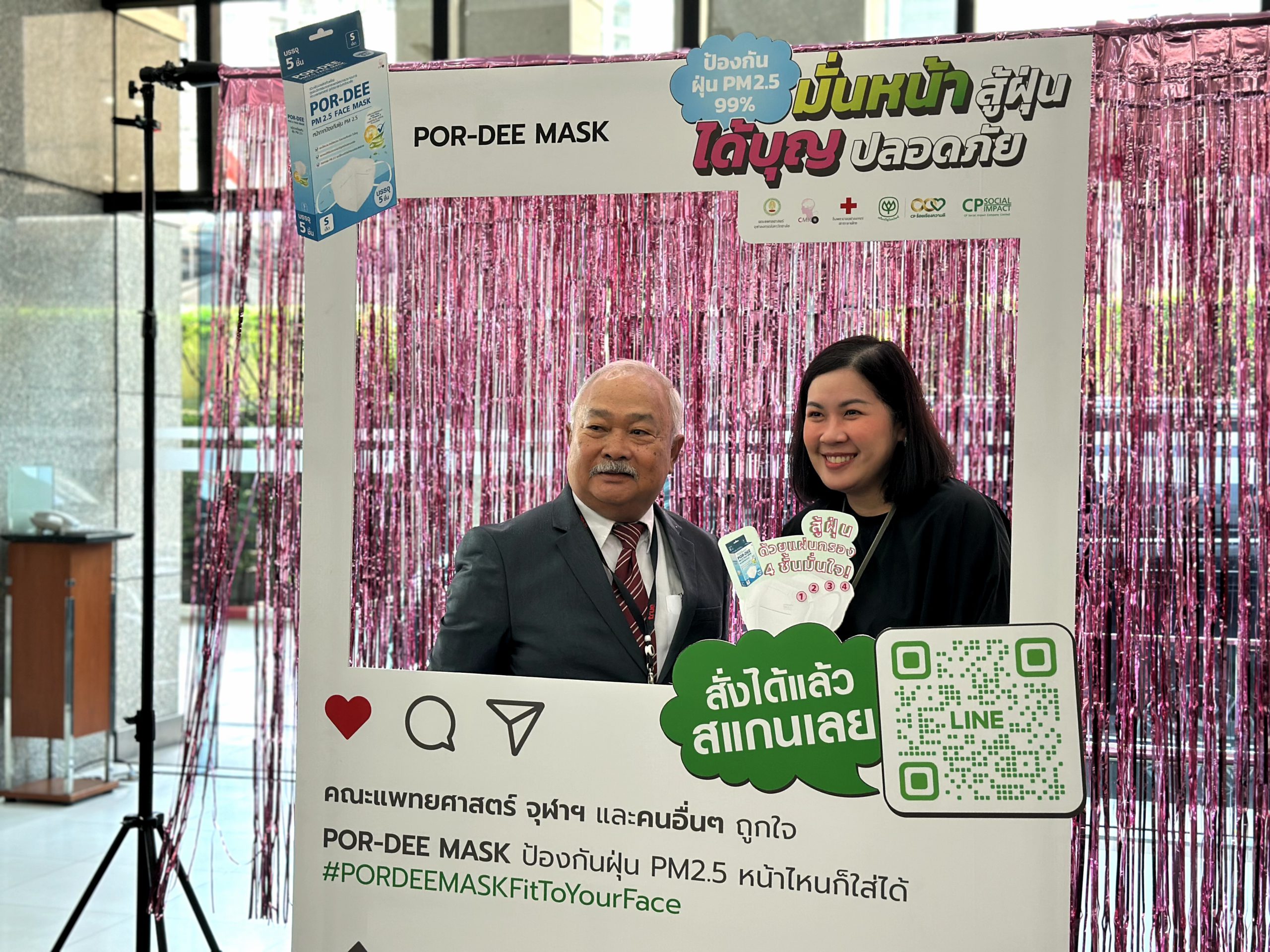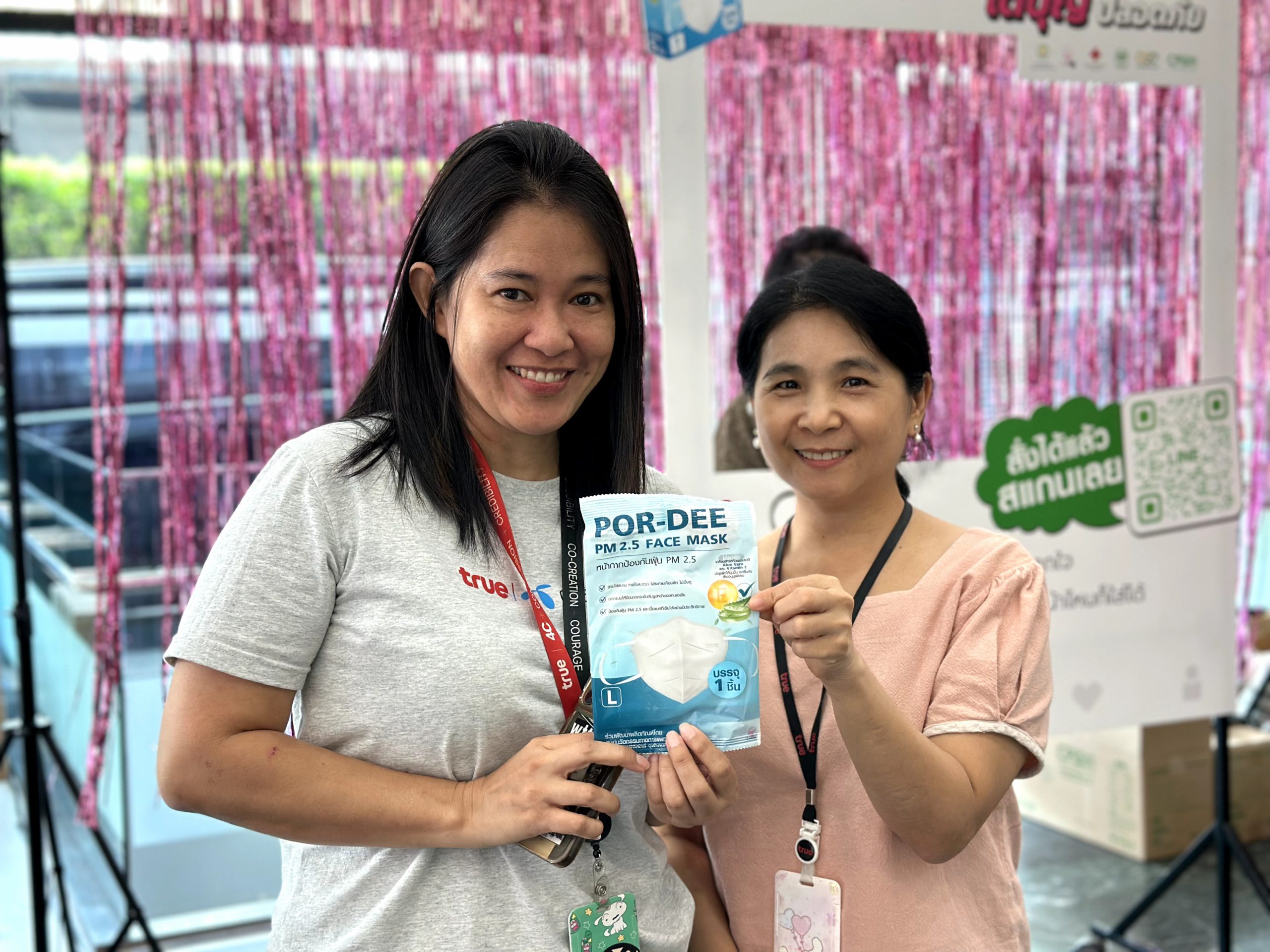 วันที่ 8 เมษายน 2568 บริษัท ซีพี โซเชียลอิมแพคท์ จำกัด จัดกิจกรรมเชิญชวนเพื่อนพนักงานซีพีและทรู ณ อาคารทรู ทาวเวอร์ รัชดา ชั้น 1 มาร่วมสนุกกับกิจกรรม แชะ & แชร์ โพสต์ปั๊บ รับฟรี หน้ากาก POR-DEE (พอดี) ที่คณะแพทยศาสตร์ จุฬาฯ และเครือเจริญโภคภัณฑ์พัฒนาร่วมกัน เพื่อให้คนไทยได้เข้าถึงหน้ากากคุณภาพสูง ปกป้องตัวเองและคนที่คุณรักจากฝุ่น PM 2.5 ได้ถึง 99% และออกแบบให้ “พอดี” สำหรับขนาดหน้าของคนไทยทุกเพศ ทุกวัย
