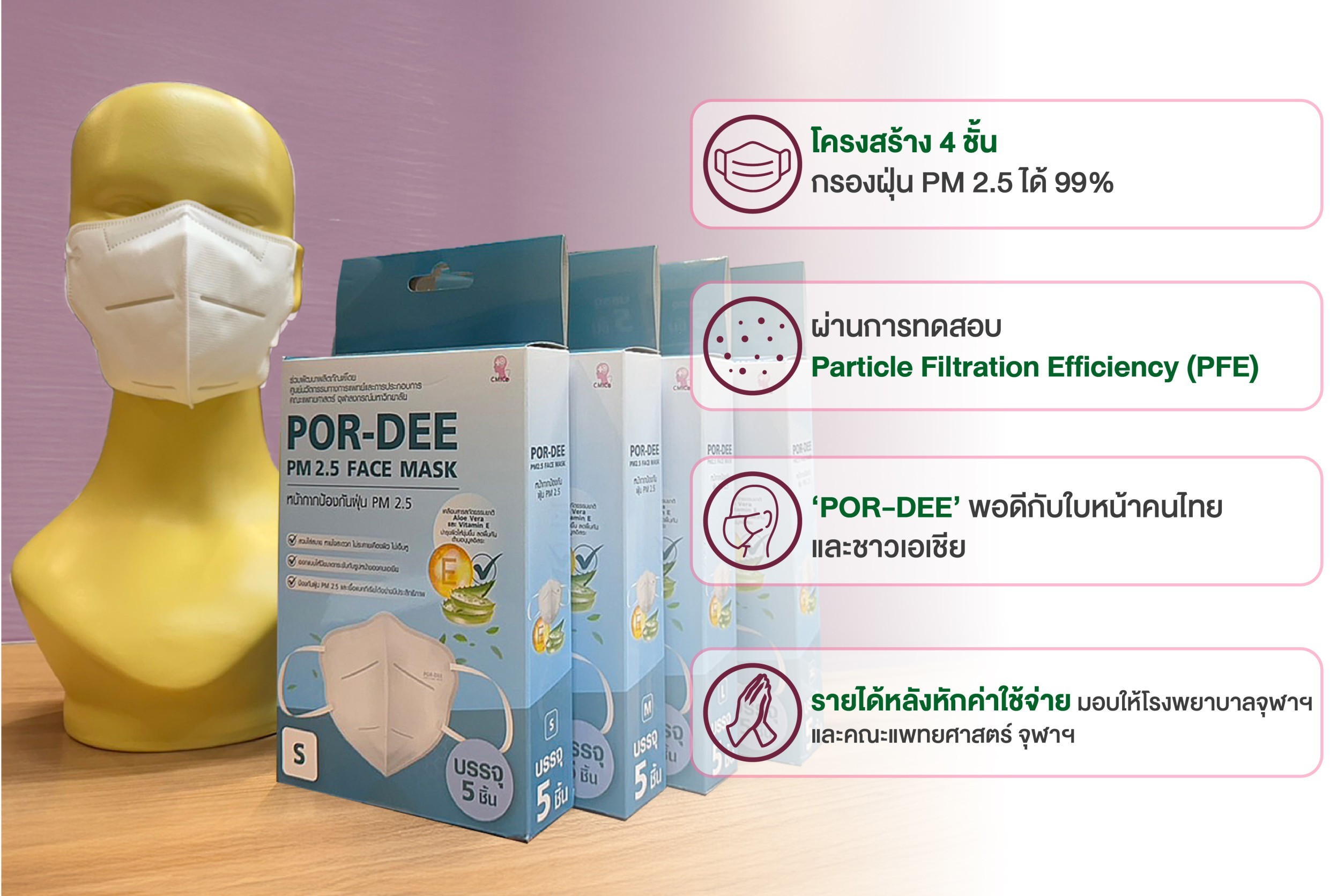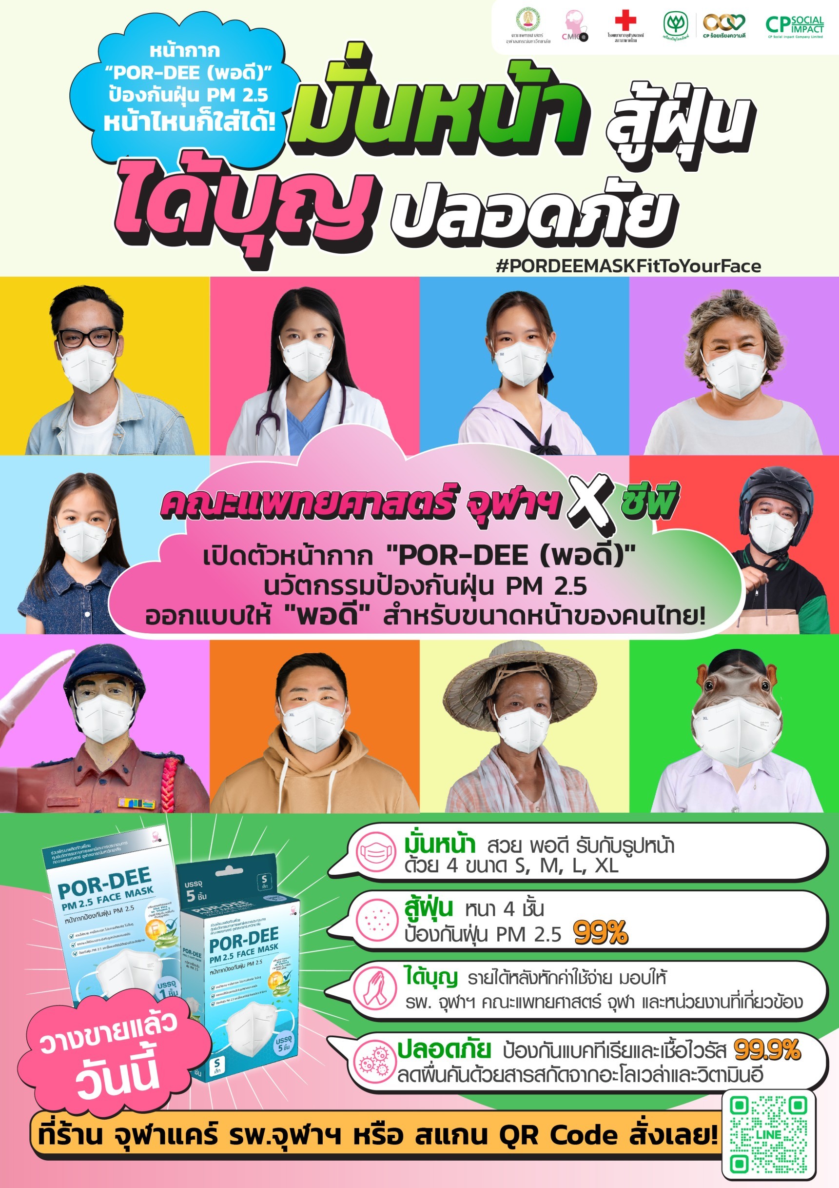 คณะแพทยศาสตร์ จุฬาฯ x เครือซีพี ร่วมพัฒนา หน้ากาก POR-DEE (พอดี) เพื่อให้คนไทยได้เข้าถึงหน้ากากคุณภาพสูง ปกป้องตัวเองและคนที่คุณรักจาก PM 2.5 อย่างมั่นใจ